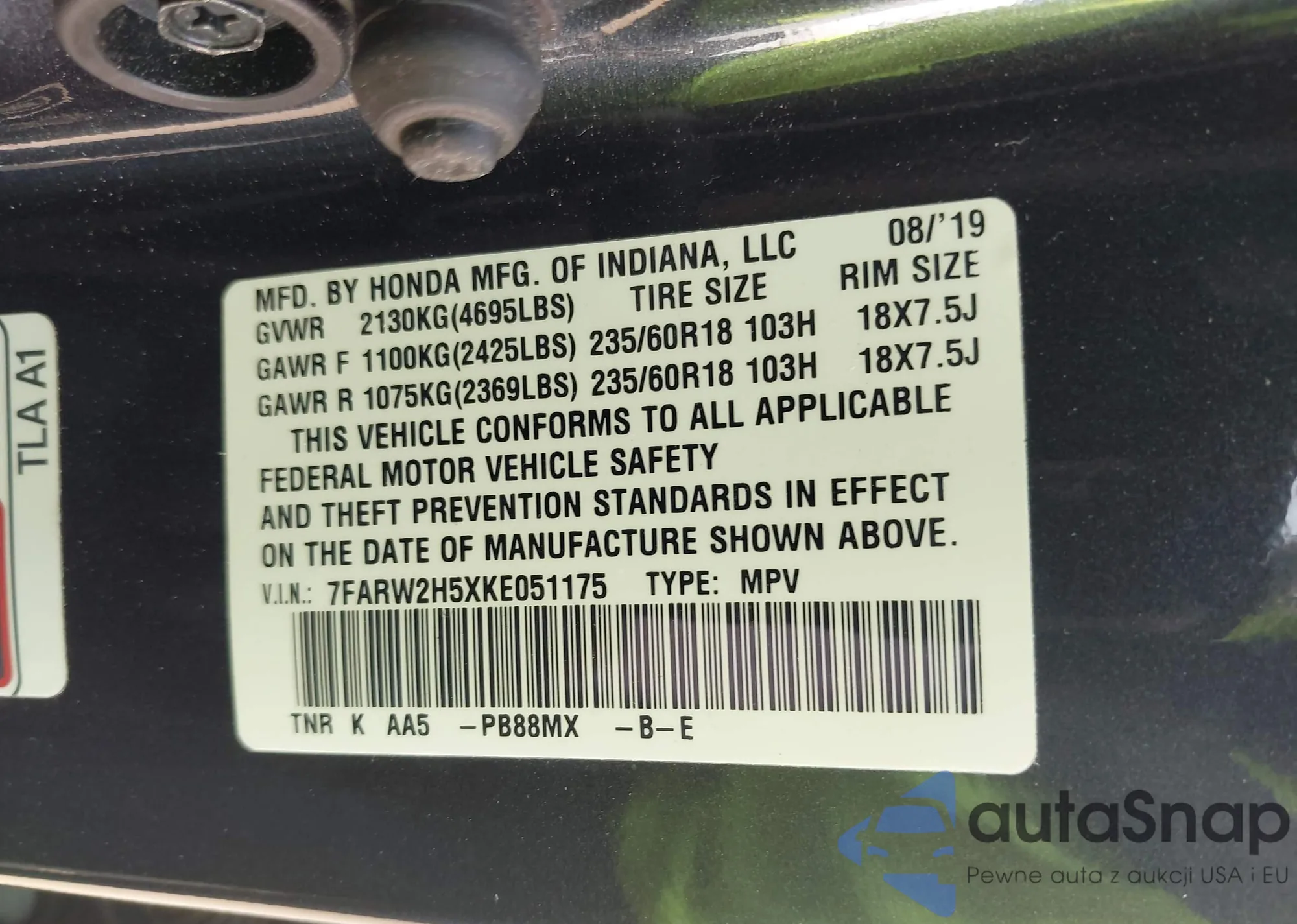 • VIN 7FARW2H5XKE051175