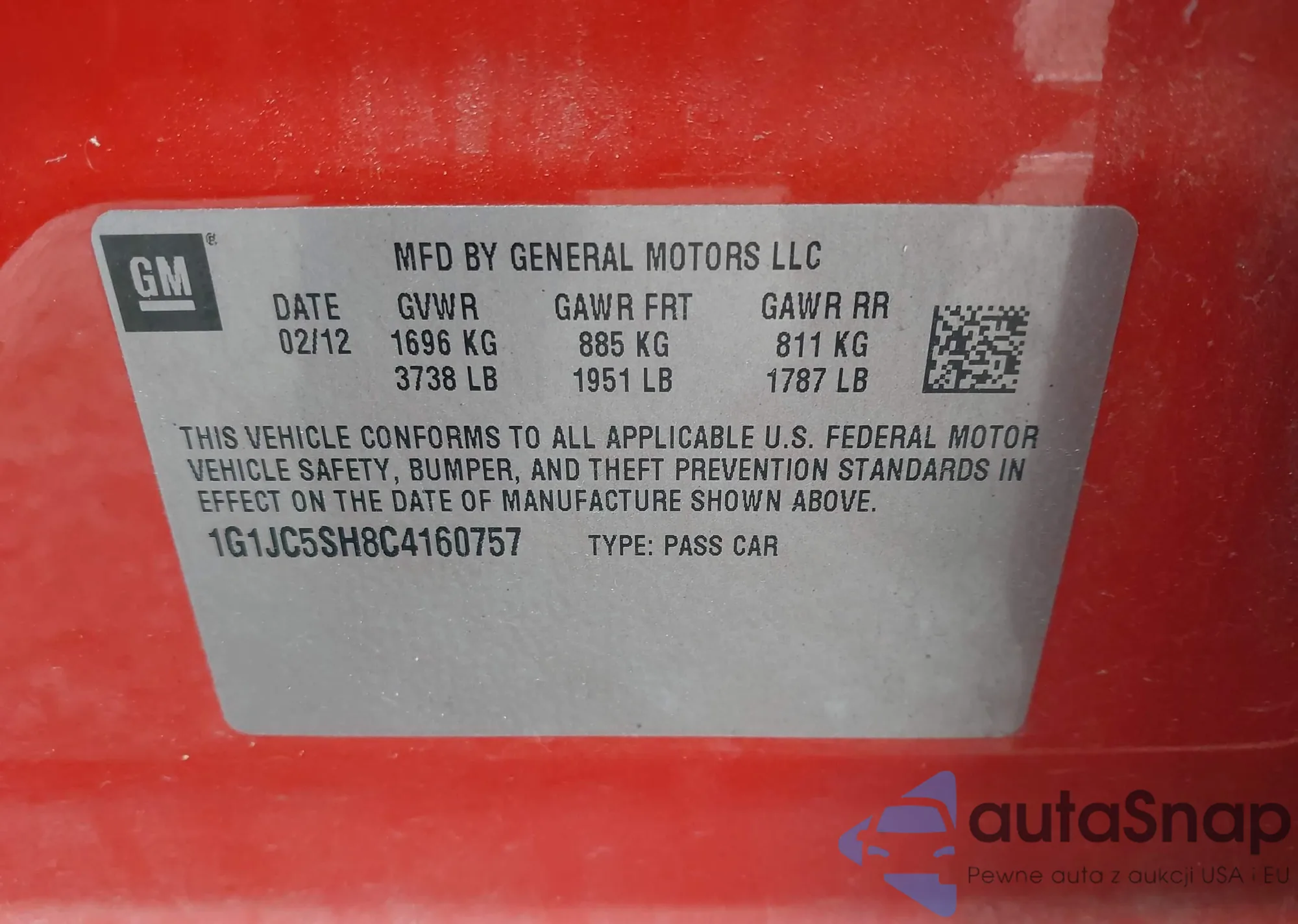 LOT: 42331700 VIN: 1G1JC5SH8C4160757