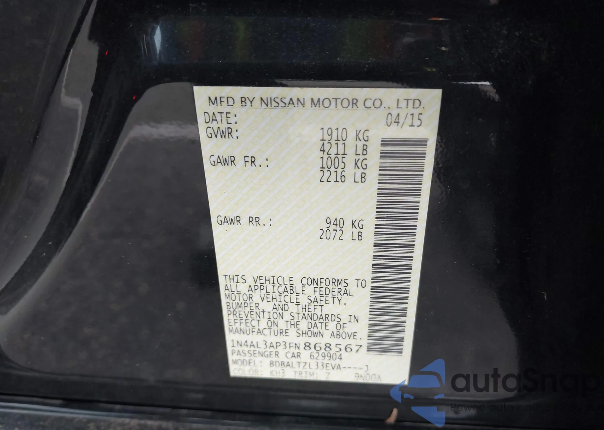 • VIN 3N1AB6AP7BL660655