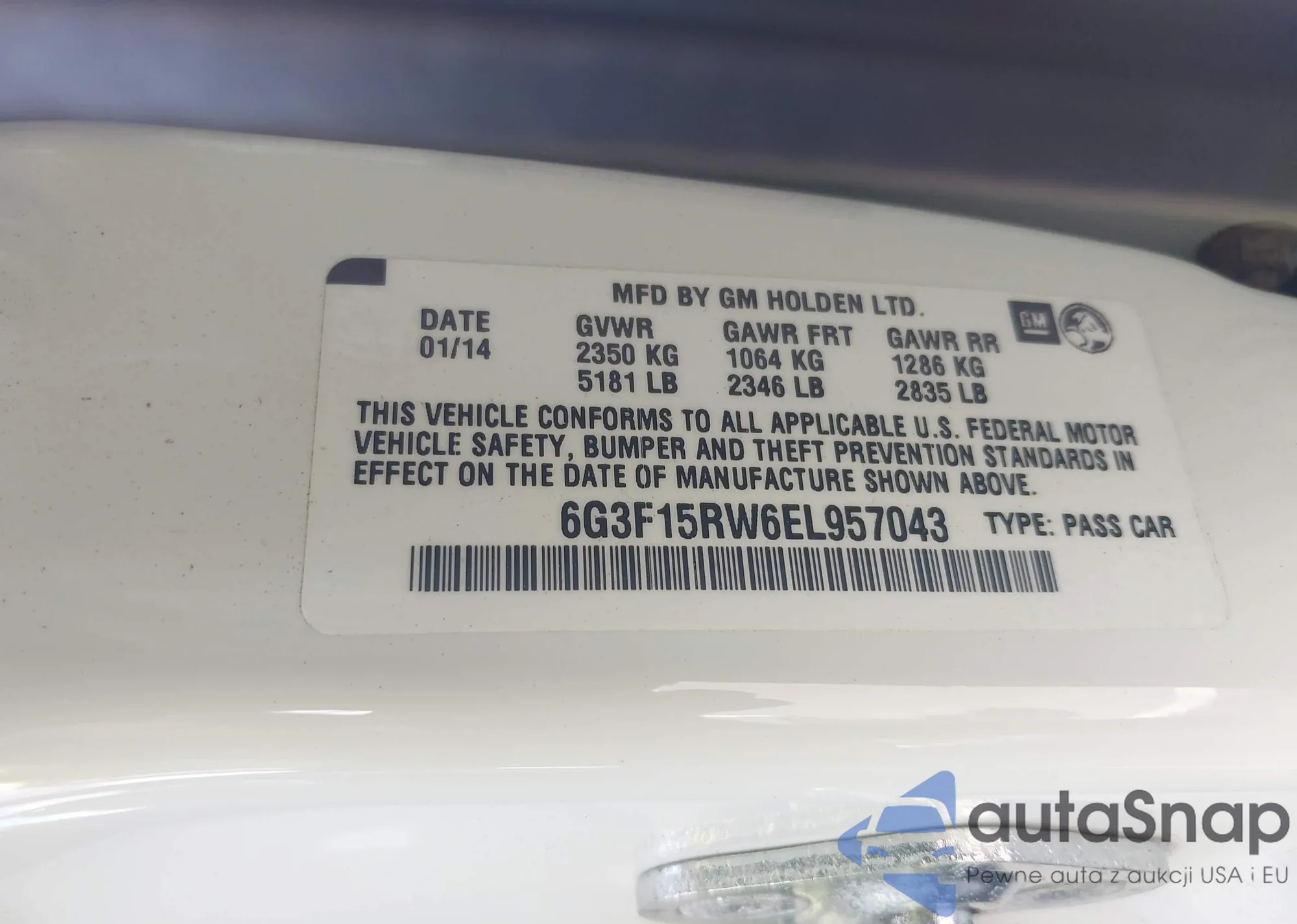 • VIN 6G3F15RW6EL957043