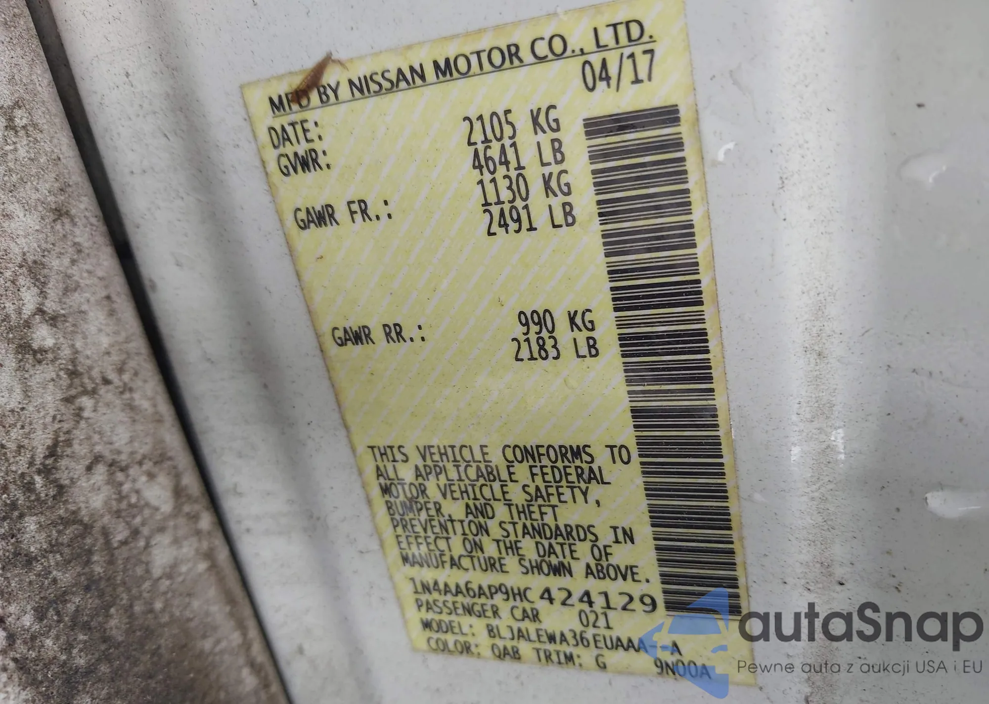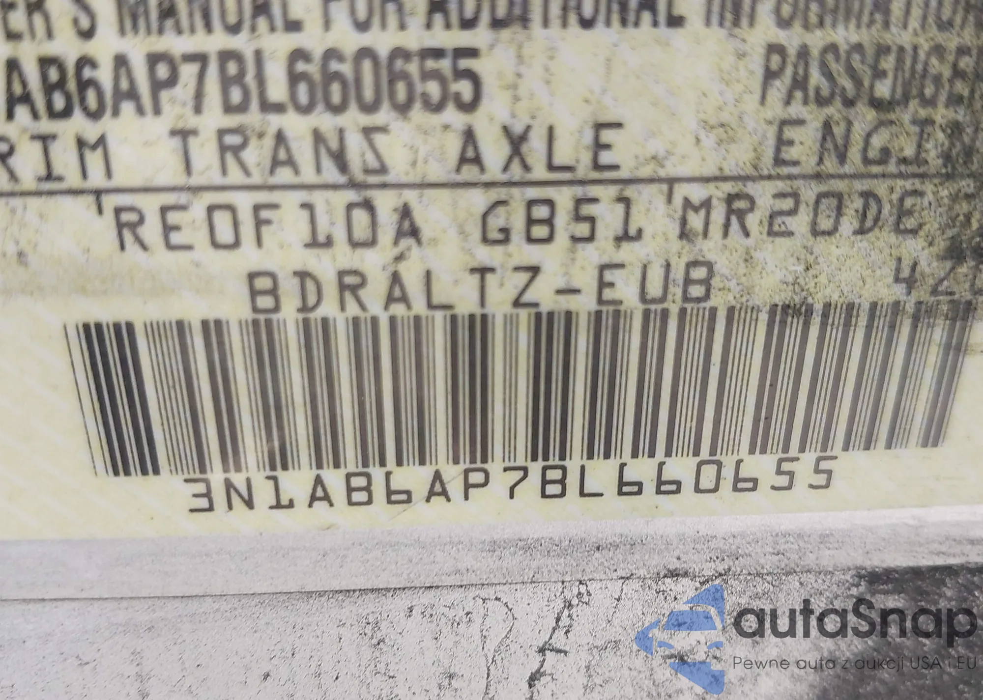 LOT: 42811835 VIN: 3N1AB6AP7BL660655