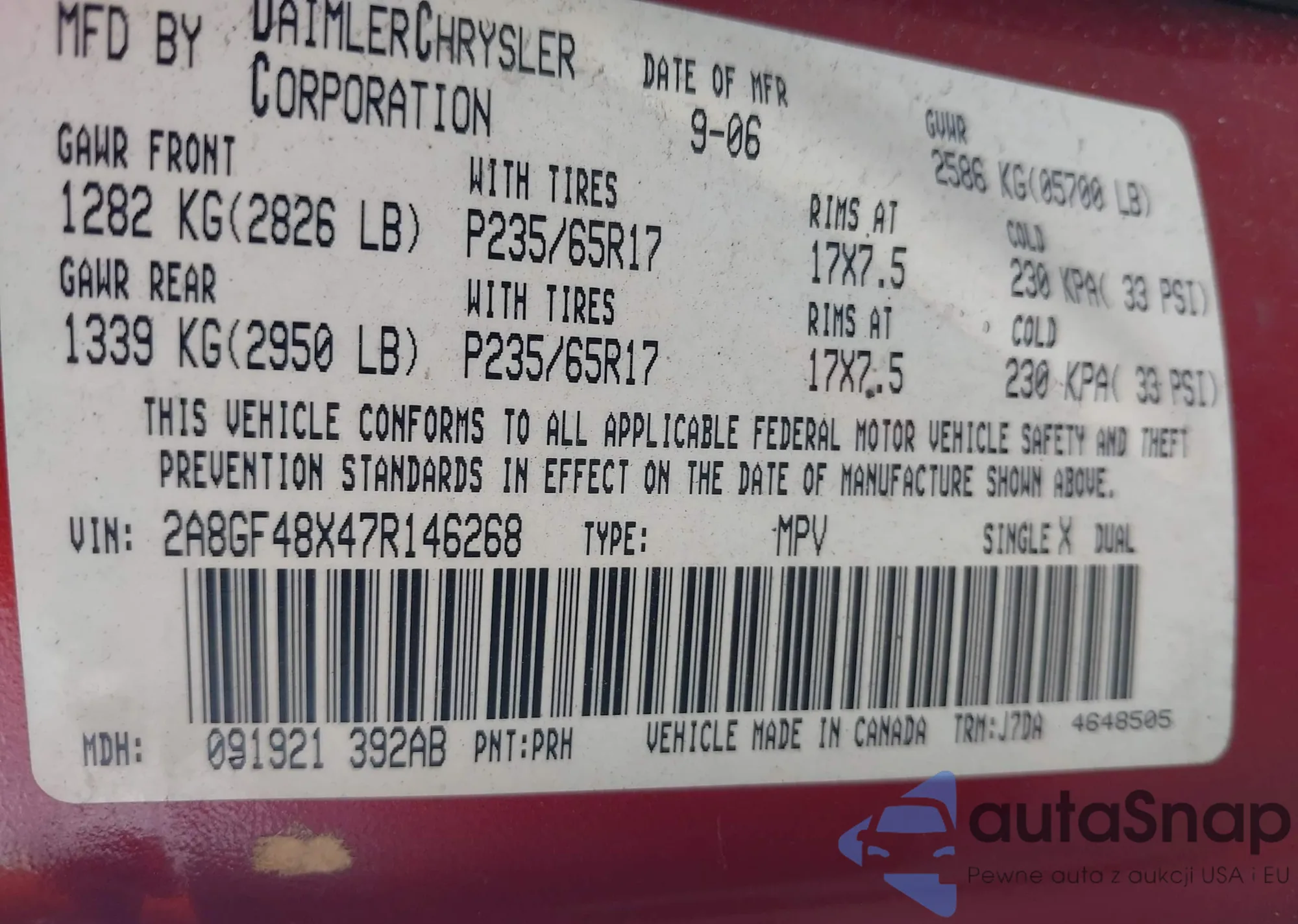 • VIN 2A8GF48X47R146268