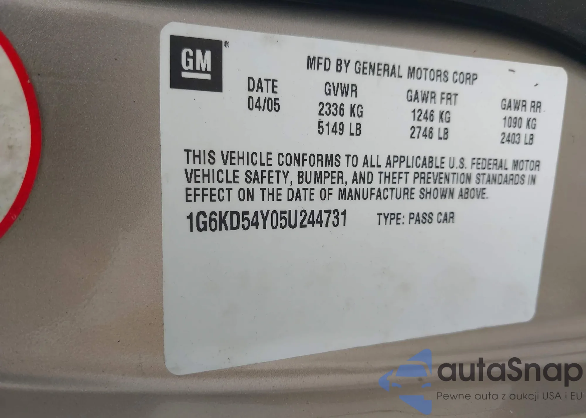 LOT: 42873803 VIN: SAJWA01T75FN24249