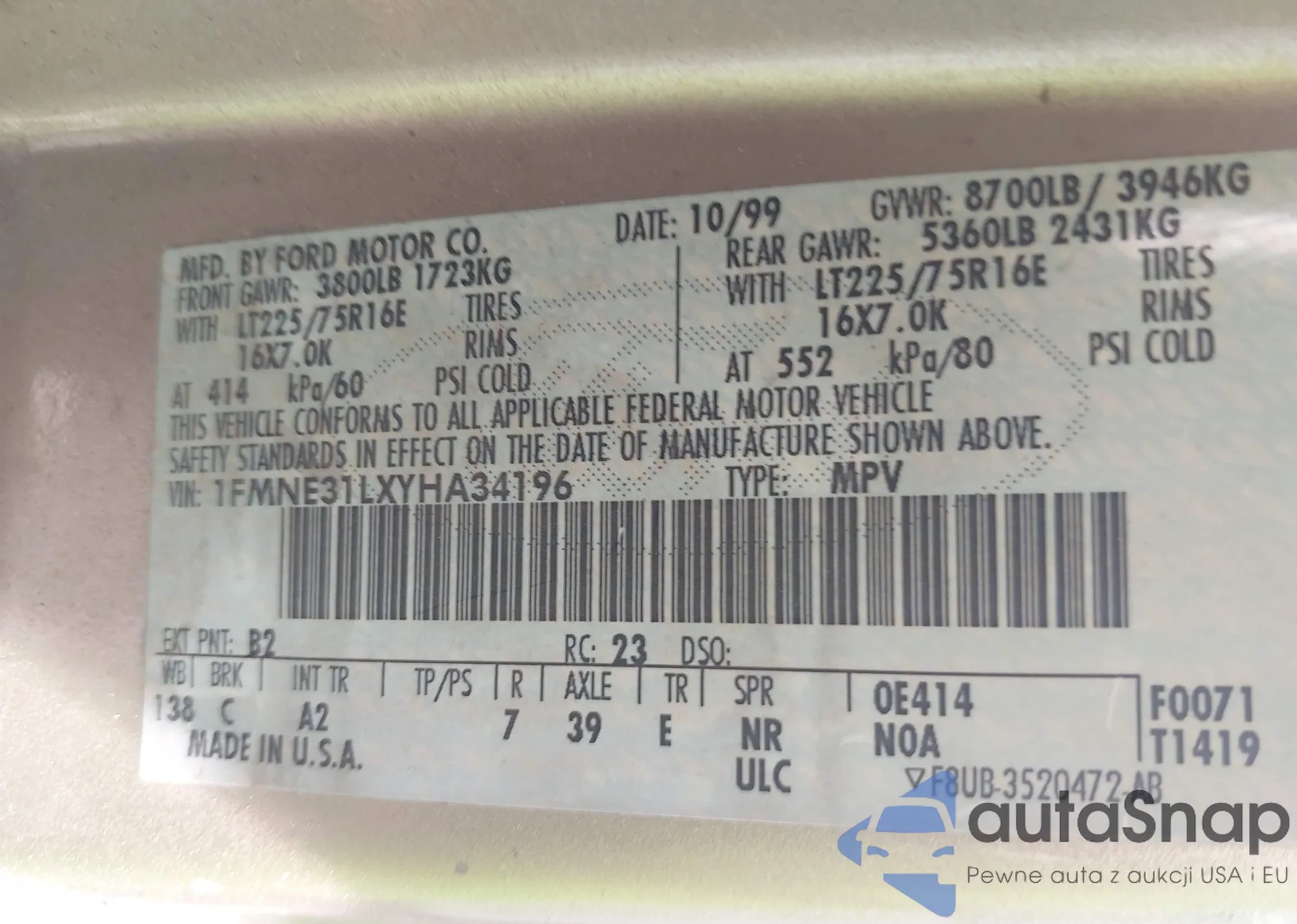 • VIN SAJWA01T75FN24249