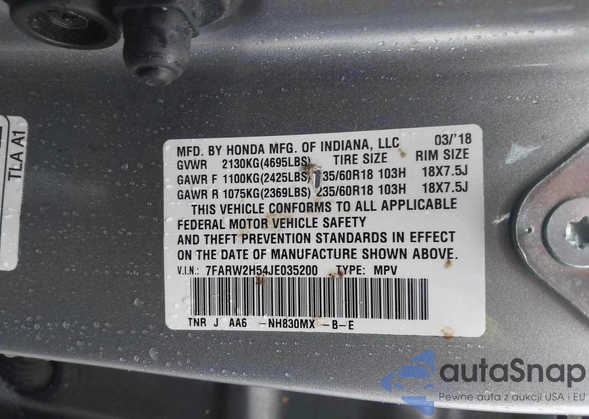 • VIN 7FARW2H54JE035200