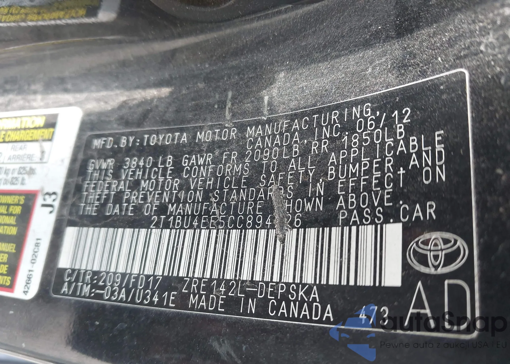• VIN 2T1BU4EE5CC894726