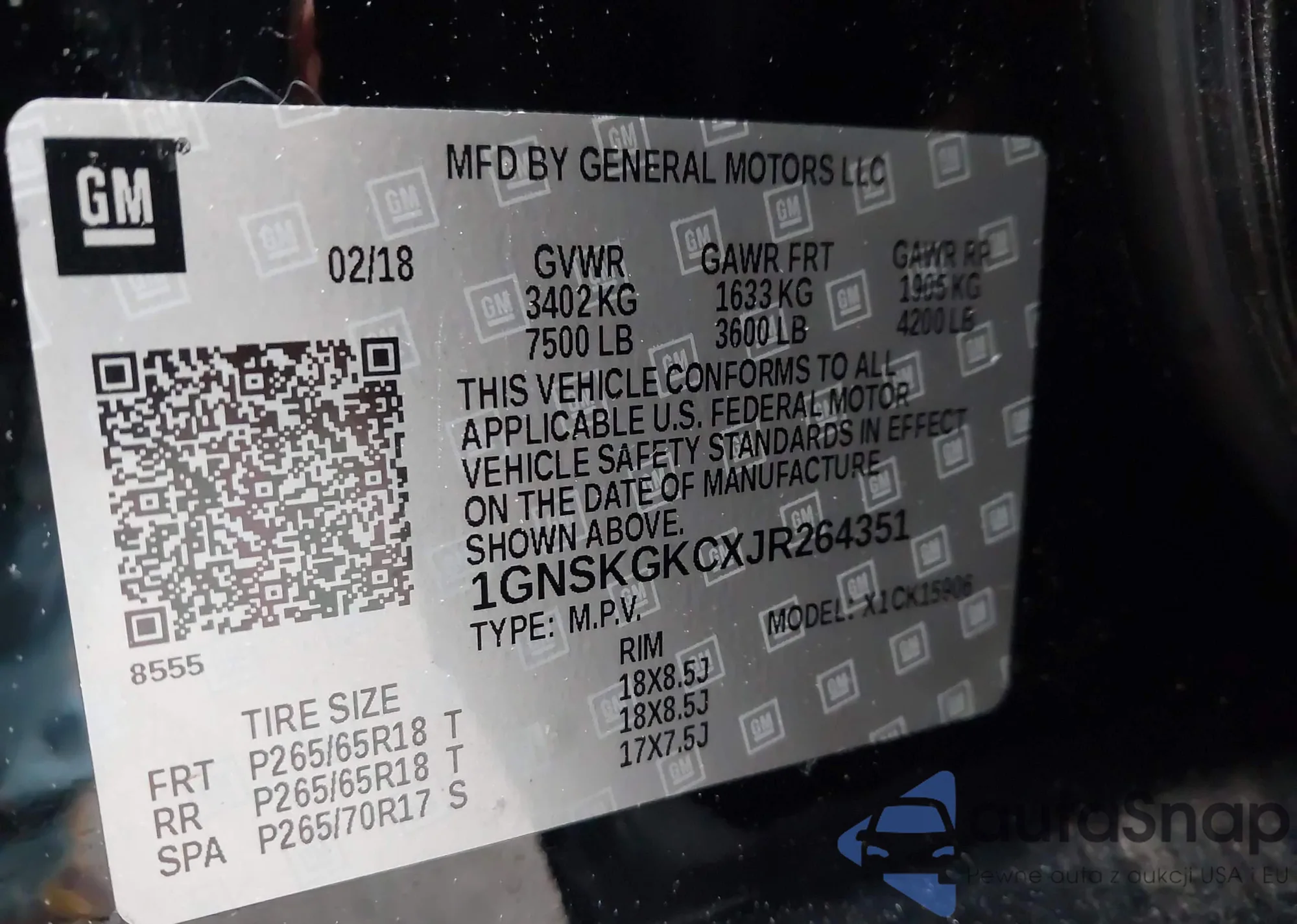 LOT: 42365399 VIN: 1GNSKGKCXJR264351
