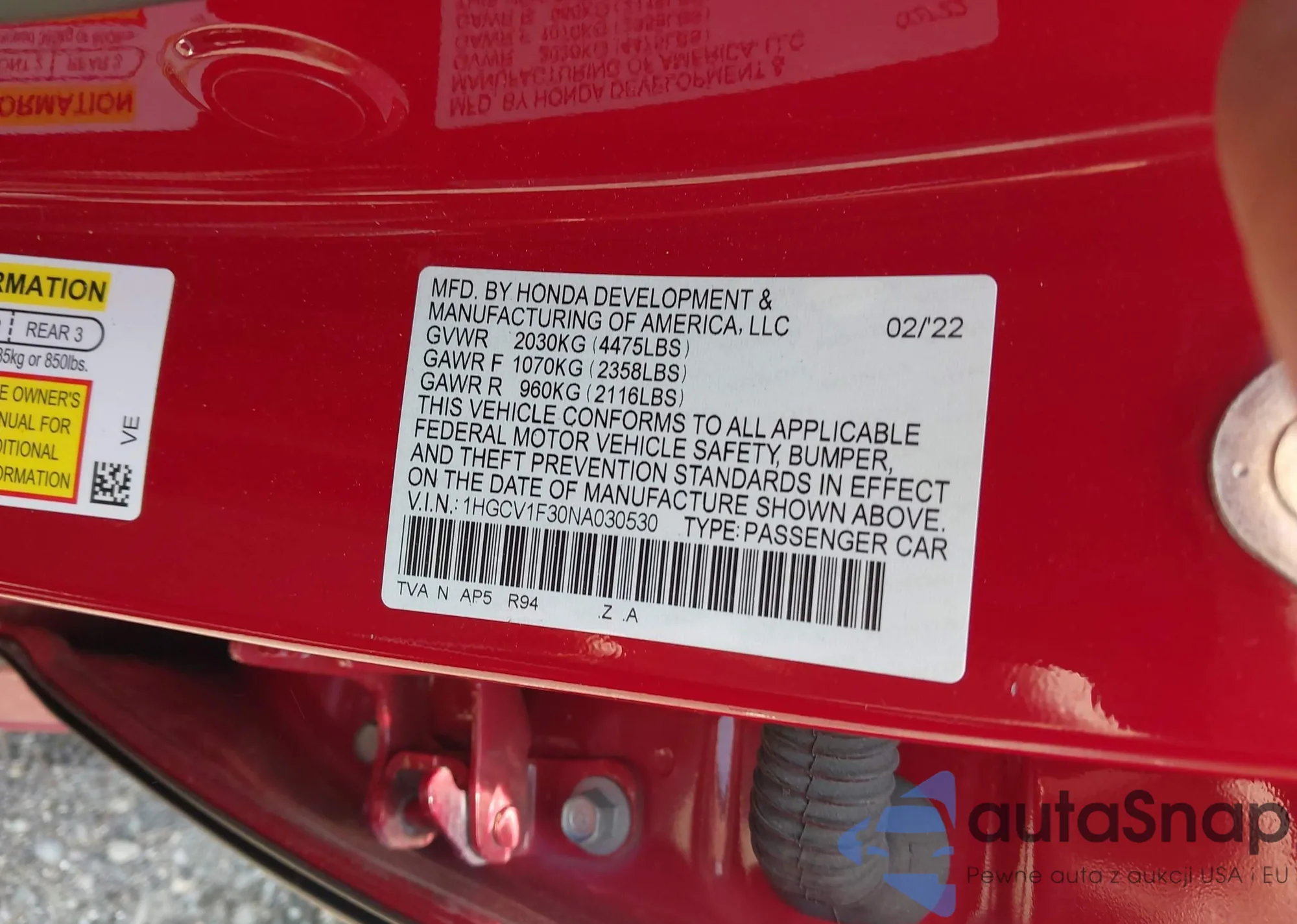 • VIN 1HGCV1F30NA030530