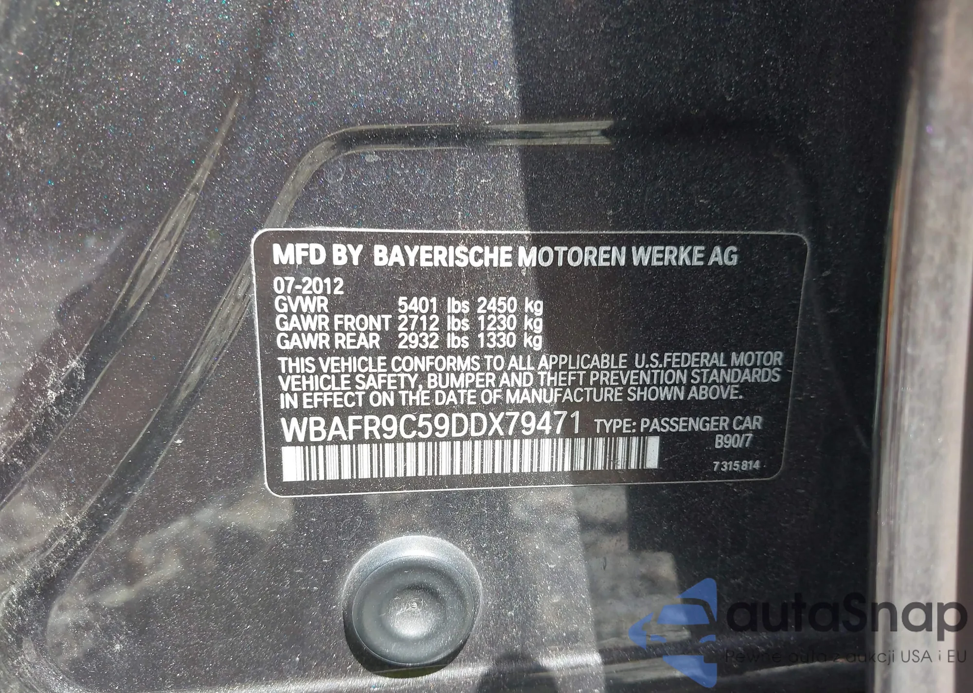 • VIN WBAFR9C59DDX79471