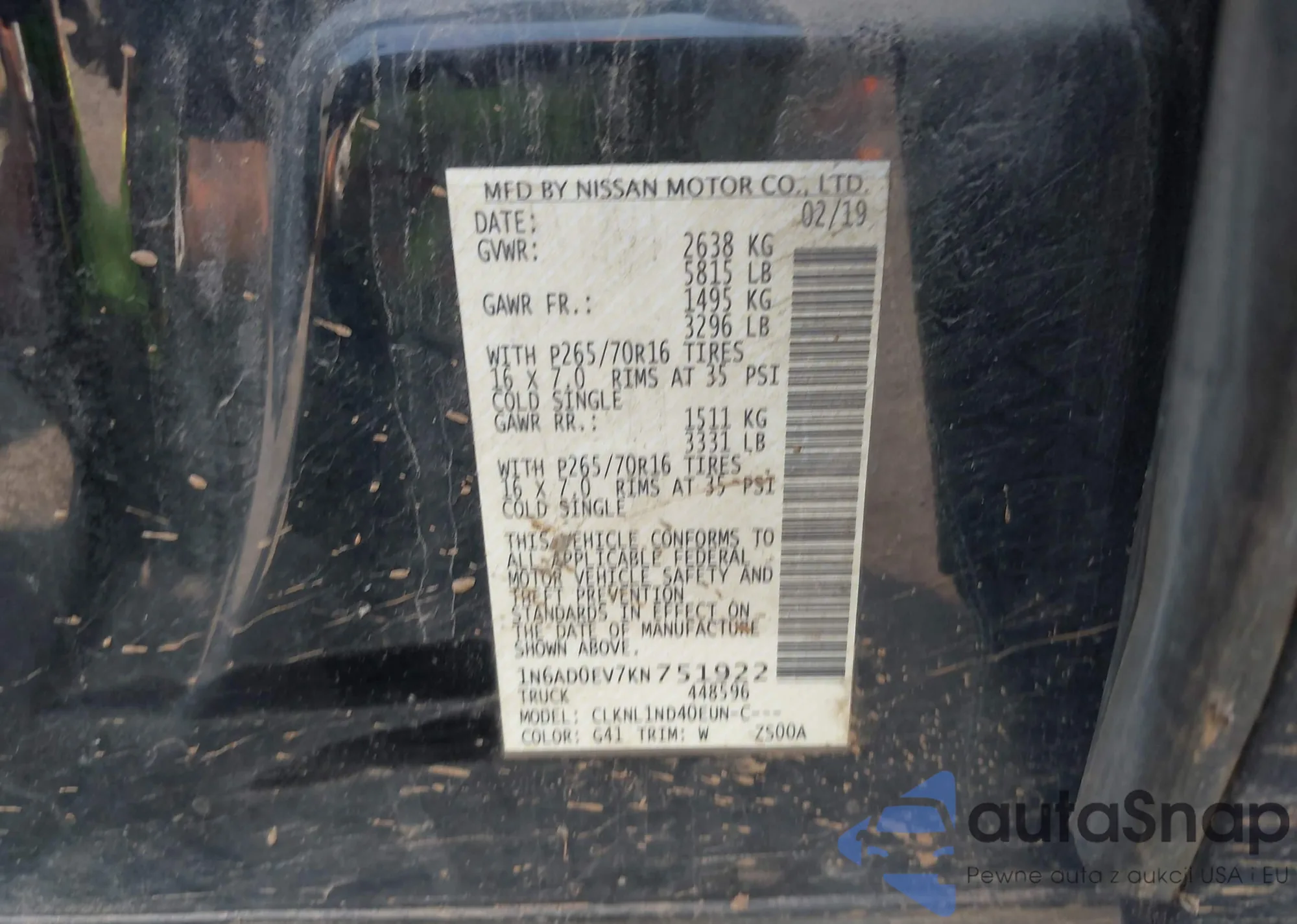 LOT: 42833431 VIN: 1N6AD0EV7KN751922