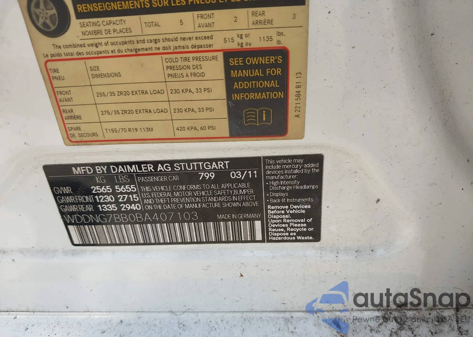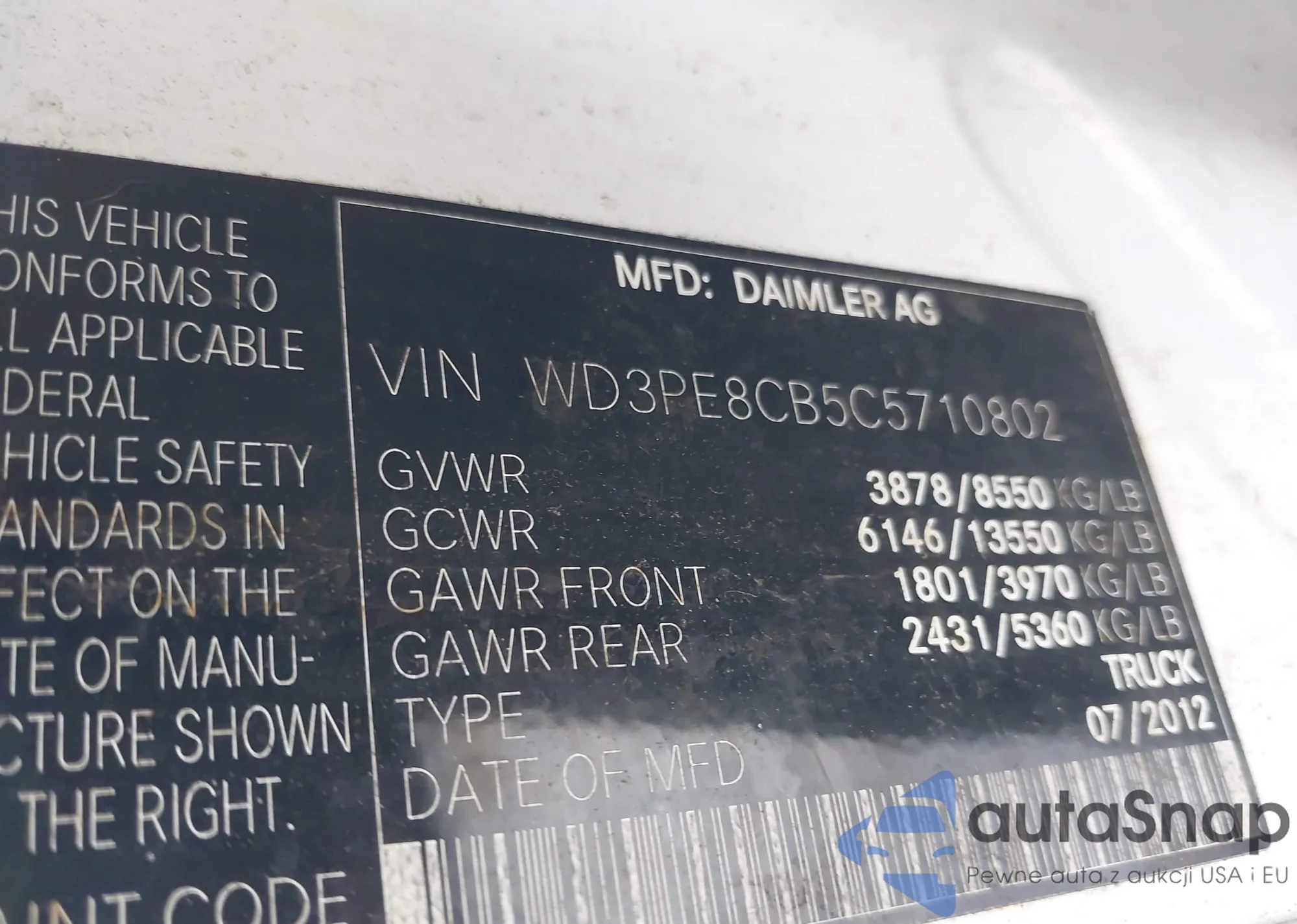 LOT: 42873916 VIN: WD3PE8CB5C5710802