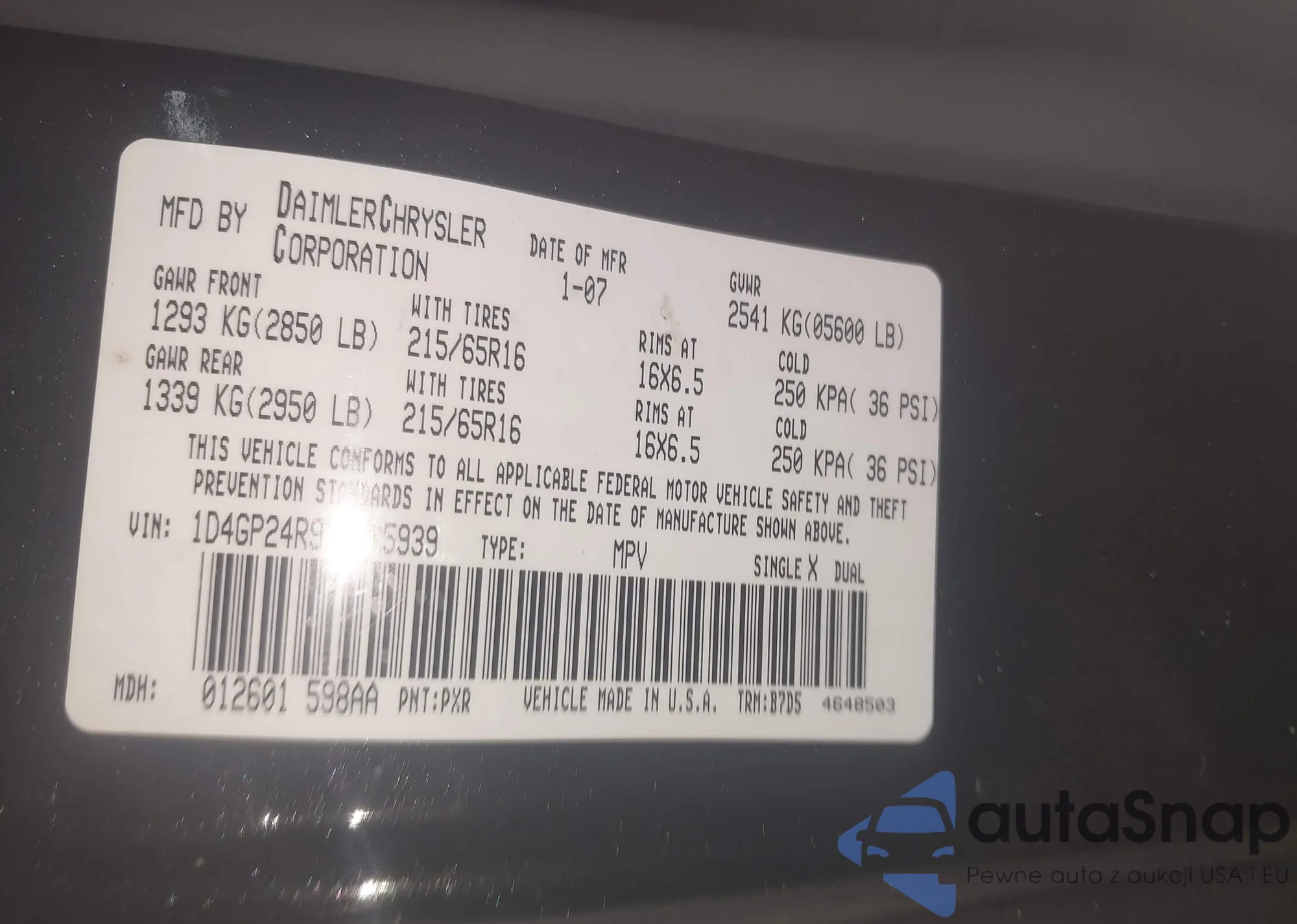 LOT: 42889922 VIN: 1D4GP24R97B185939