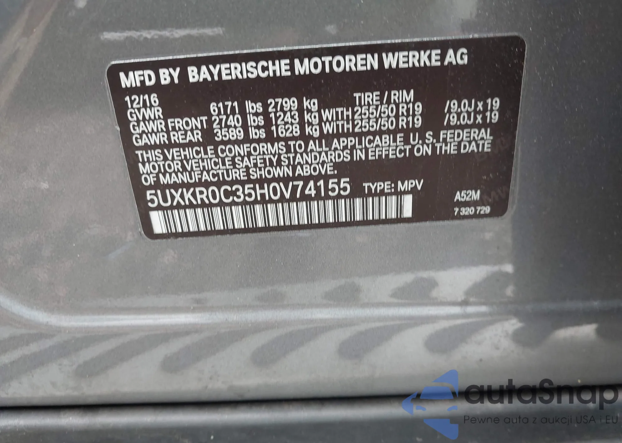 LOT: 42906057 VIN: 5UXKR0C35H0V74155
