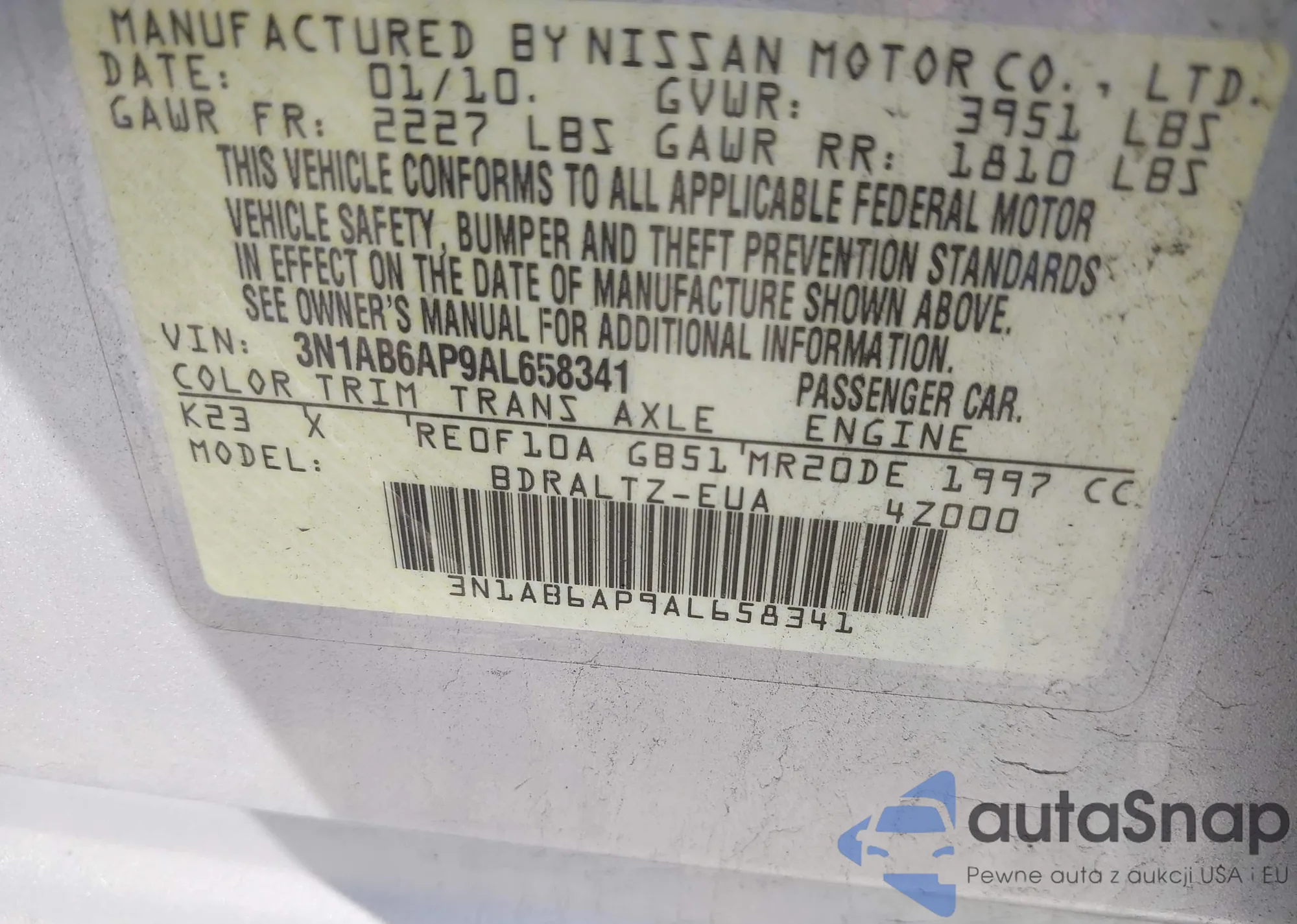 • VIN 3N1AB6AP9AL658341