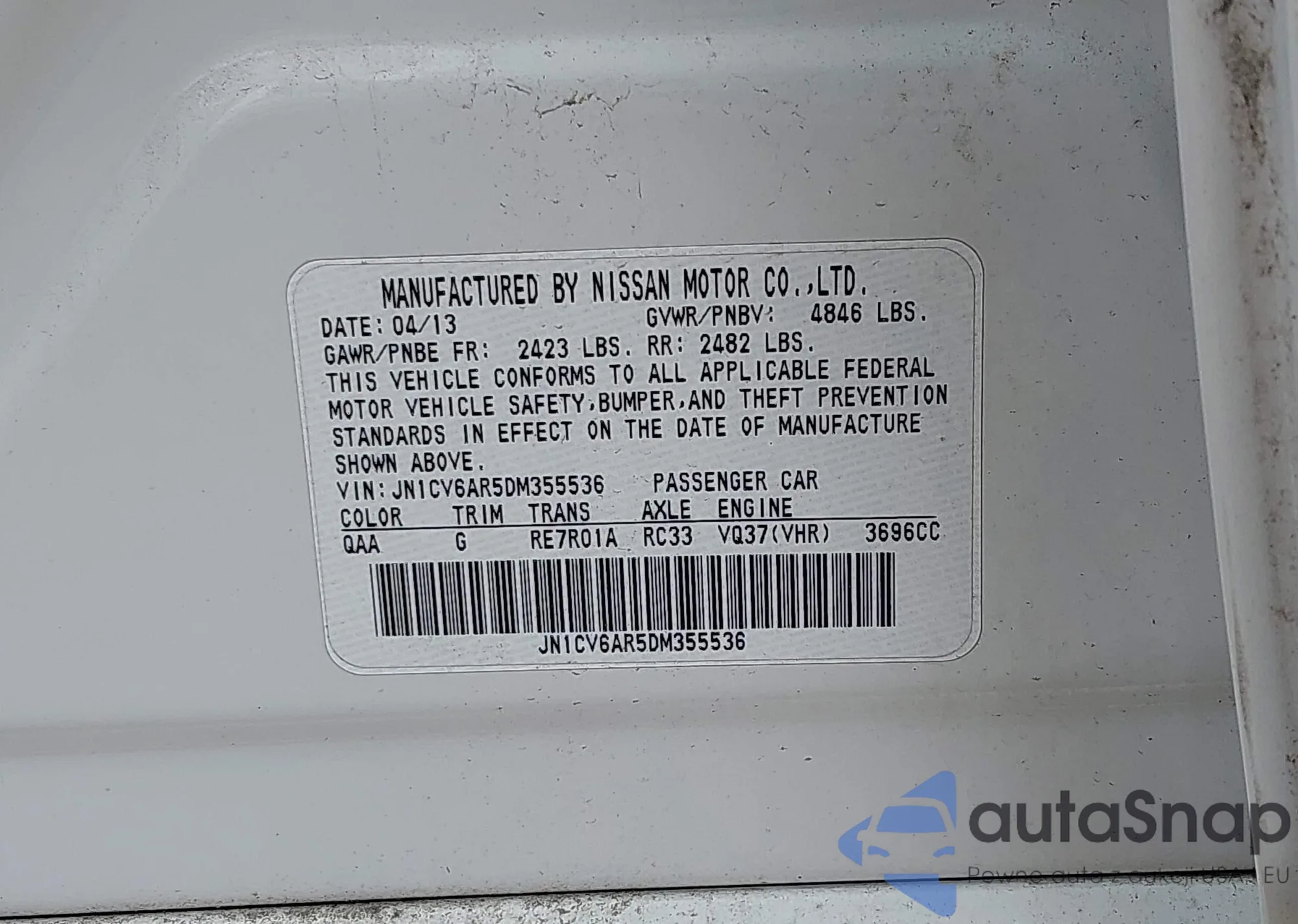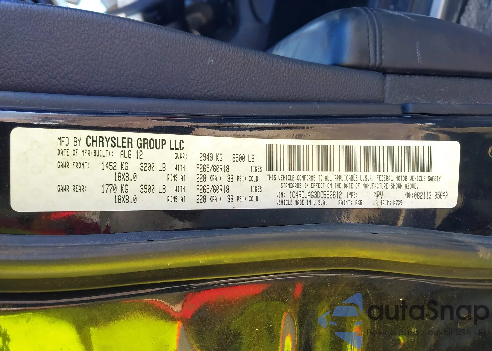 • VIN 1C4RDJAG3DC552612