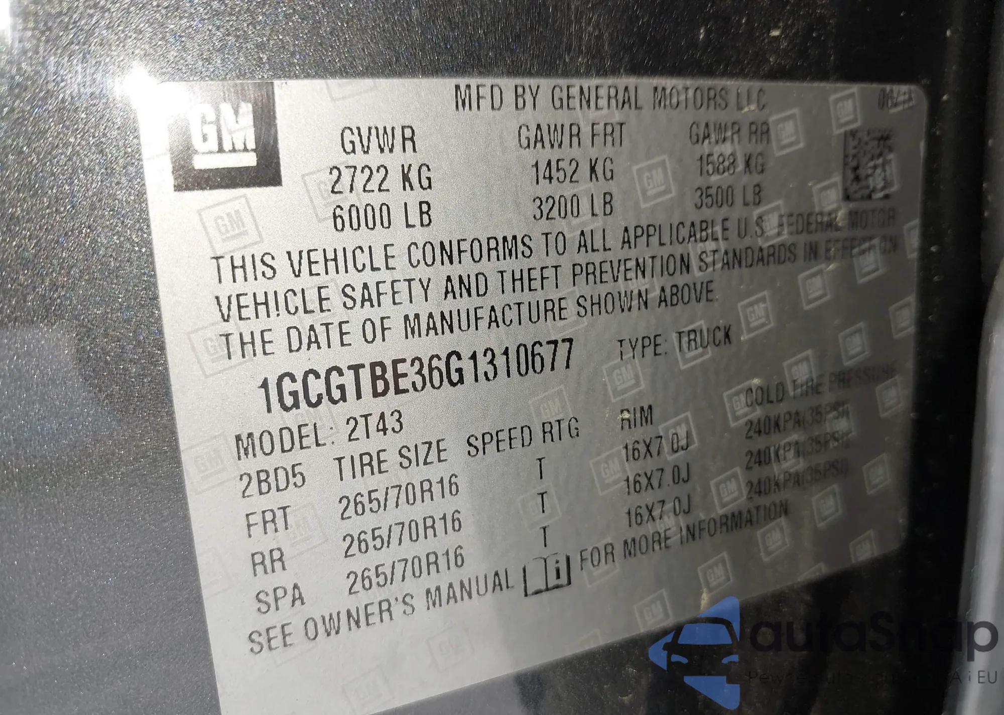 LOT: 42075866 VIN: 1G1PF5S96B7162062