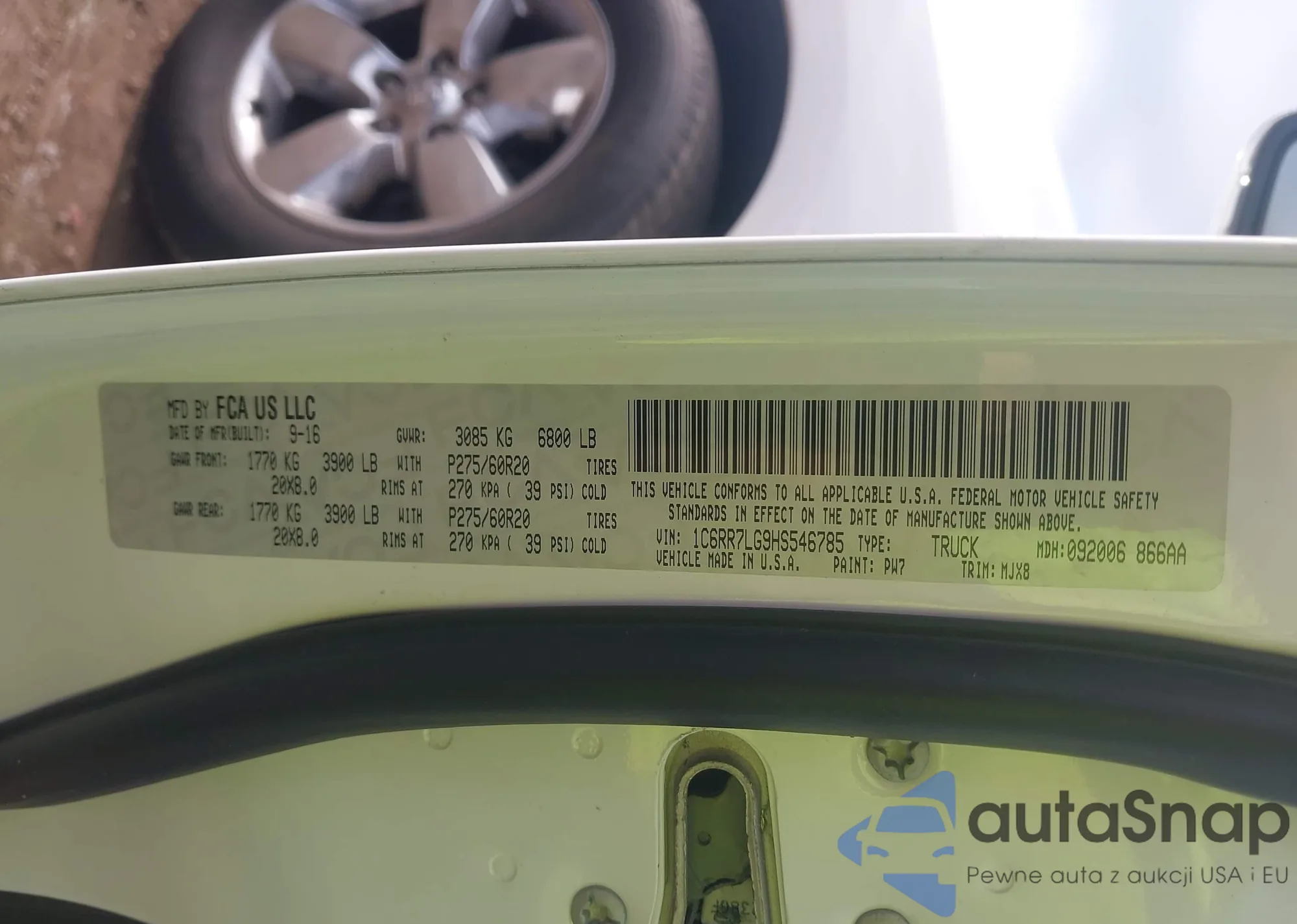 • VIN 5J6RS6H93PL007518