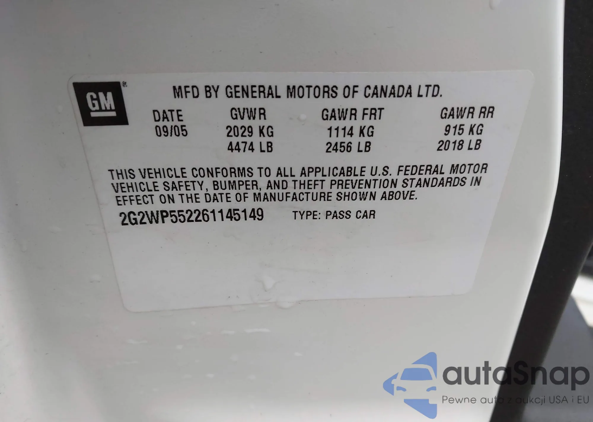 LOT: 42254204 VIN: 2G1WG5E35C1143078