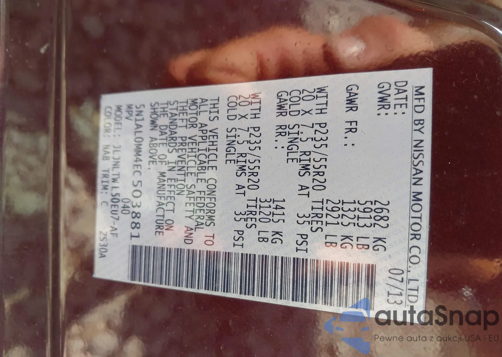 • VIN 5N1AL0MM4EC503881