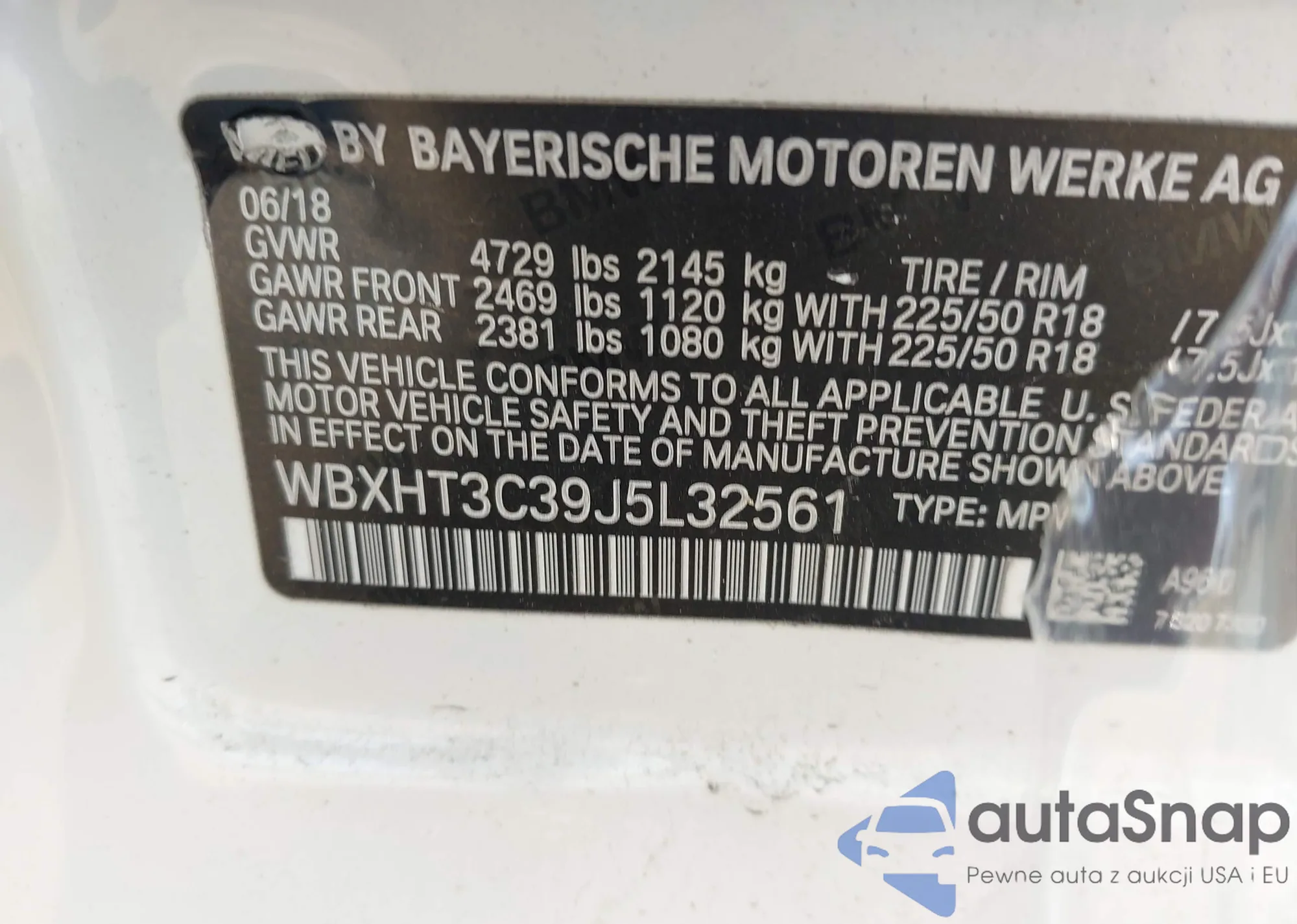 LOT: 42546188 VIN: WBXHT3C39J5L32561