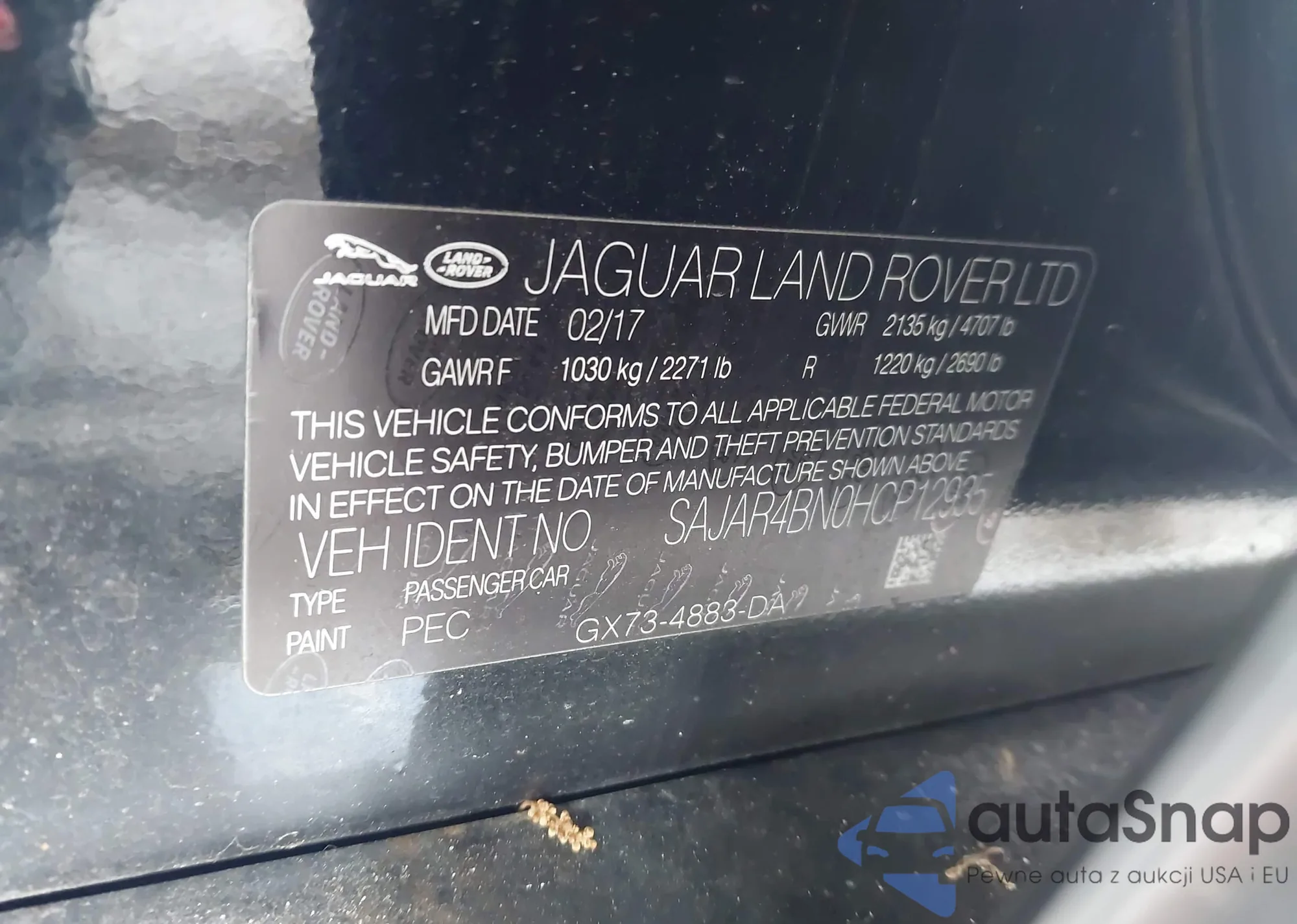 LOT: 42816507 VIN: SAJAR4BN0HCP12935