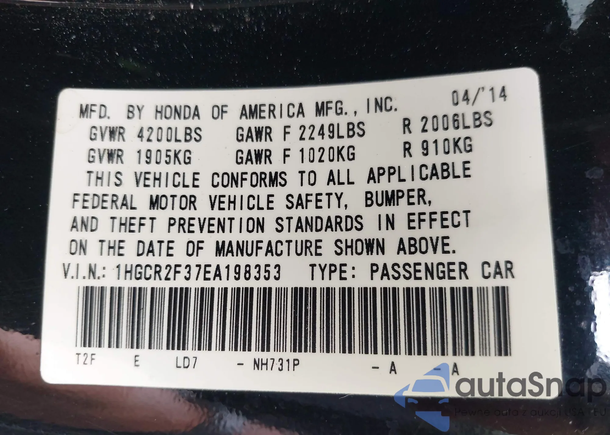 • VIN 1HGCR2F37EA198353