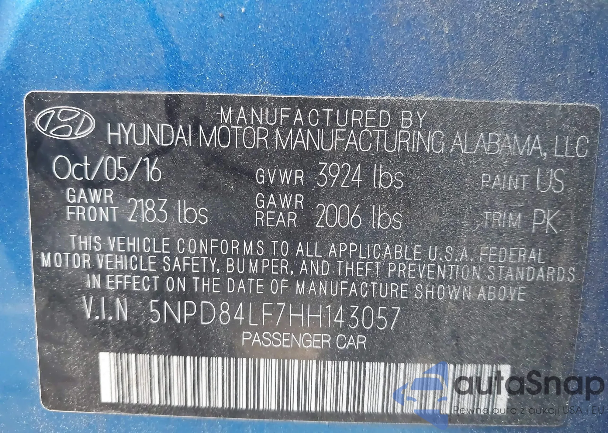• VIN 5NPD84LF7HH143057