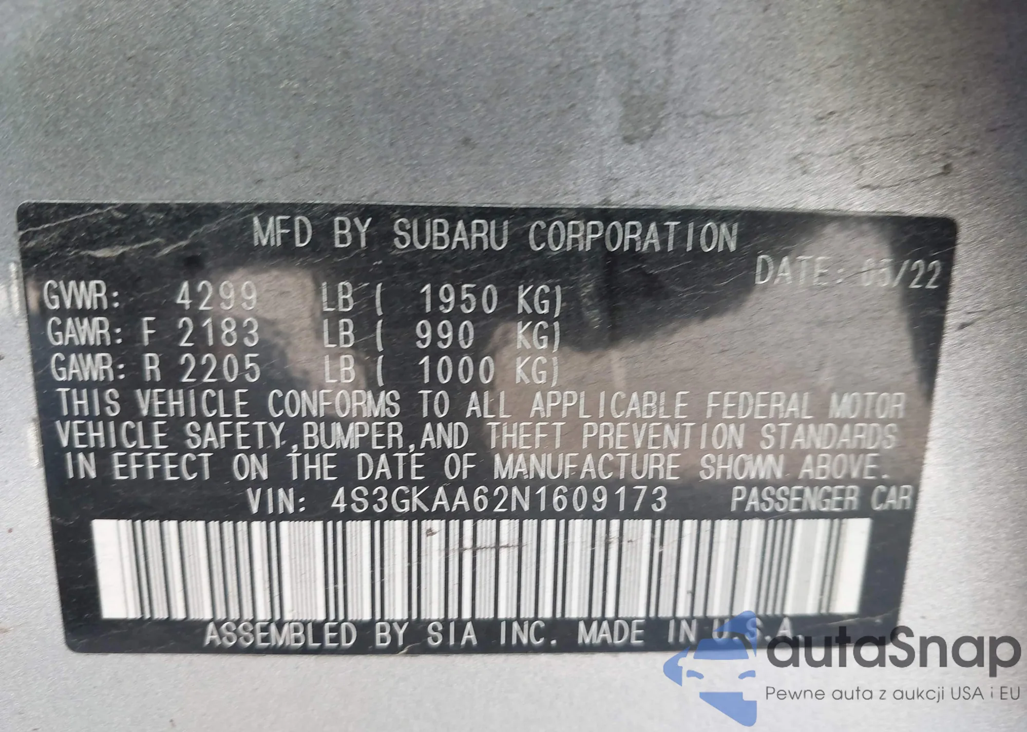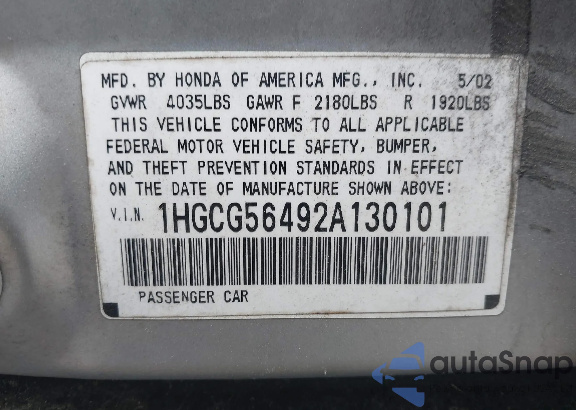 LOT: 42643424 VIN: 1HGCG56492A130101