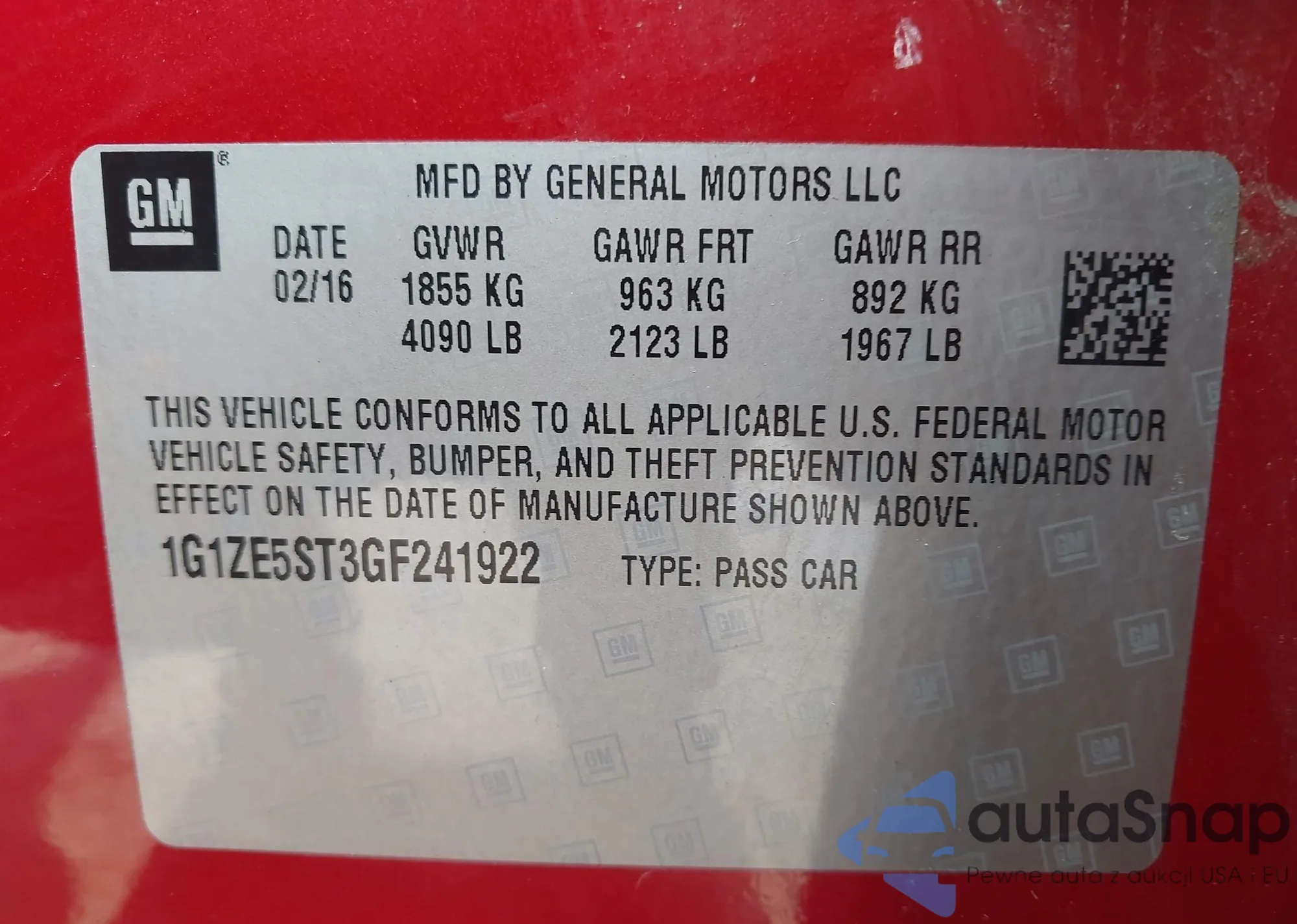 • VIN 1G1ZE5ST3GF241922