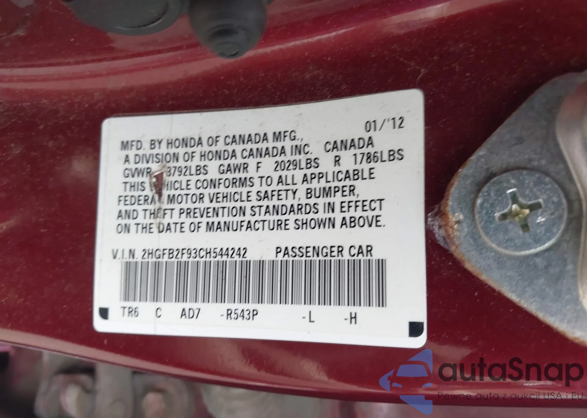 • VIN 2HKRM4H76CH106352