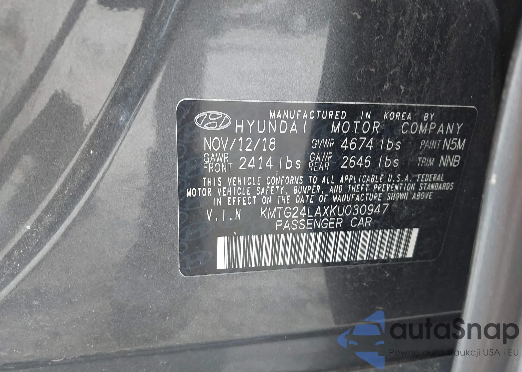 • VIN KMTG24LAXKU030947