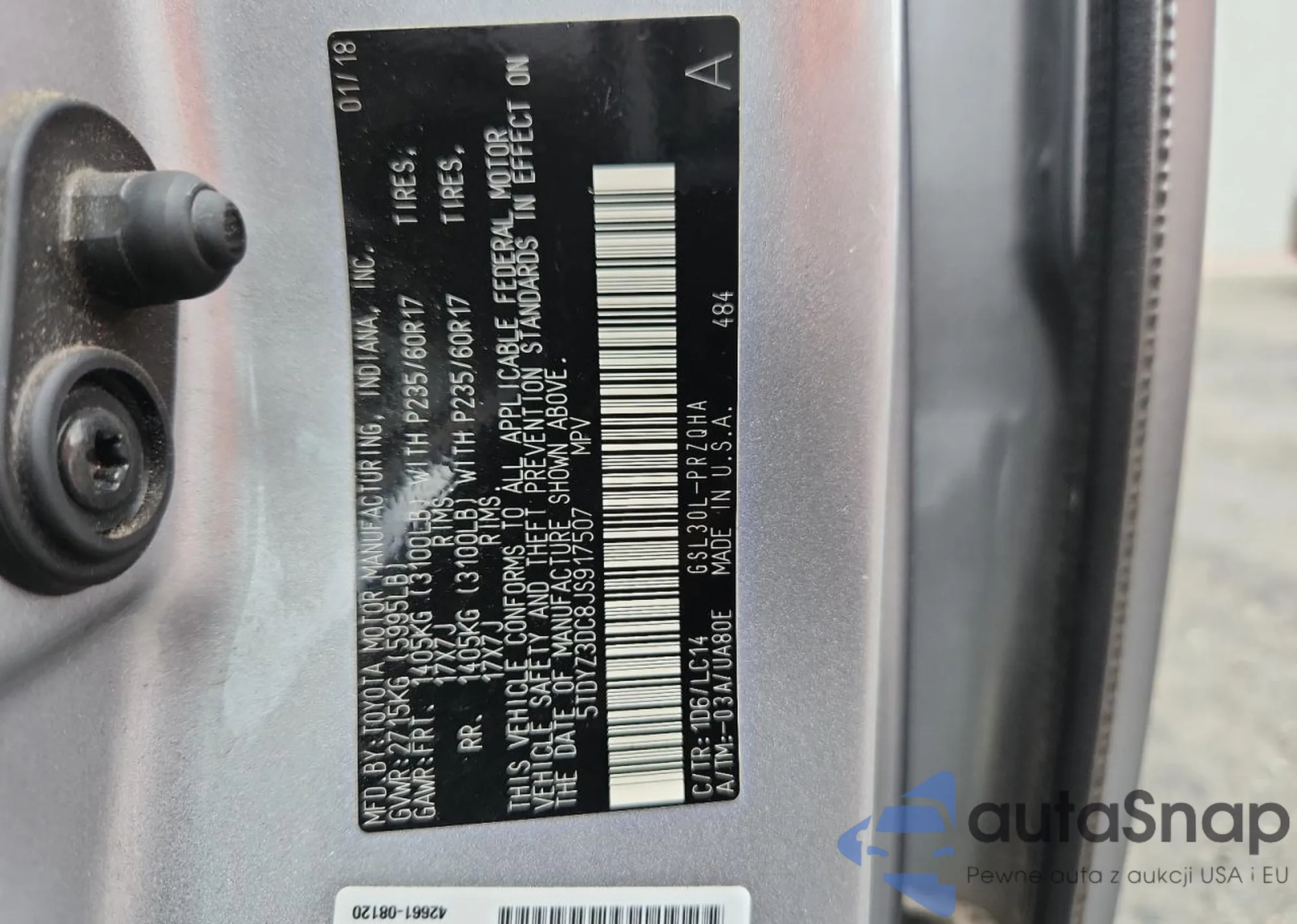 • VIN 5TDYZ3DC8JS917507