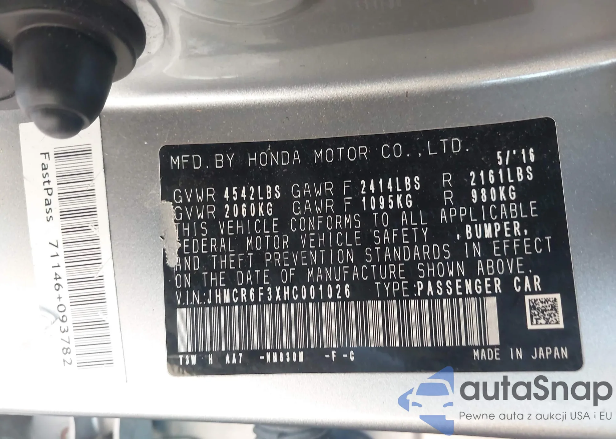 • VIN JHMCR6F3XHC001026