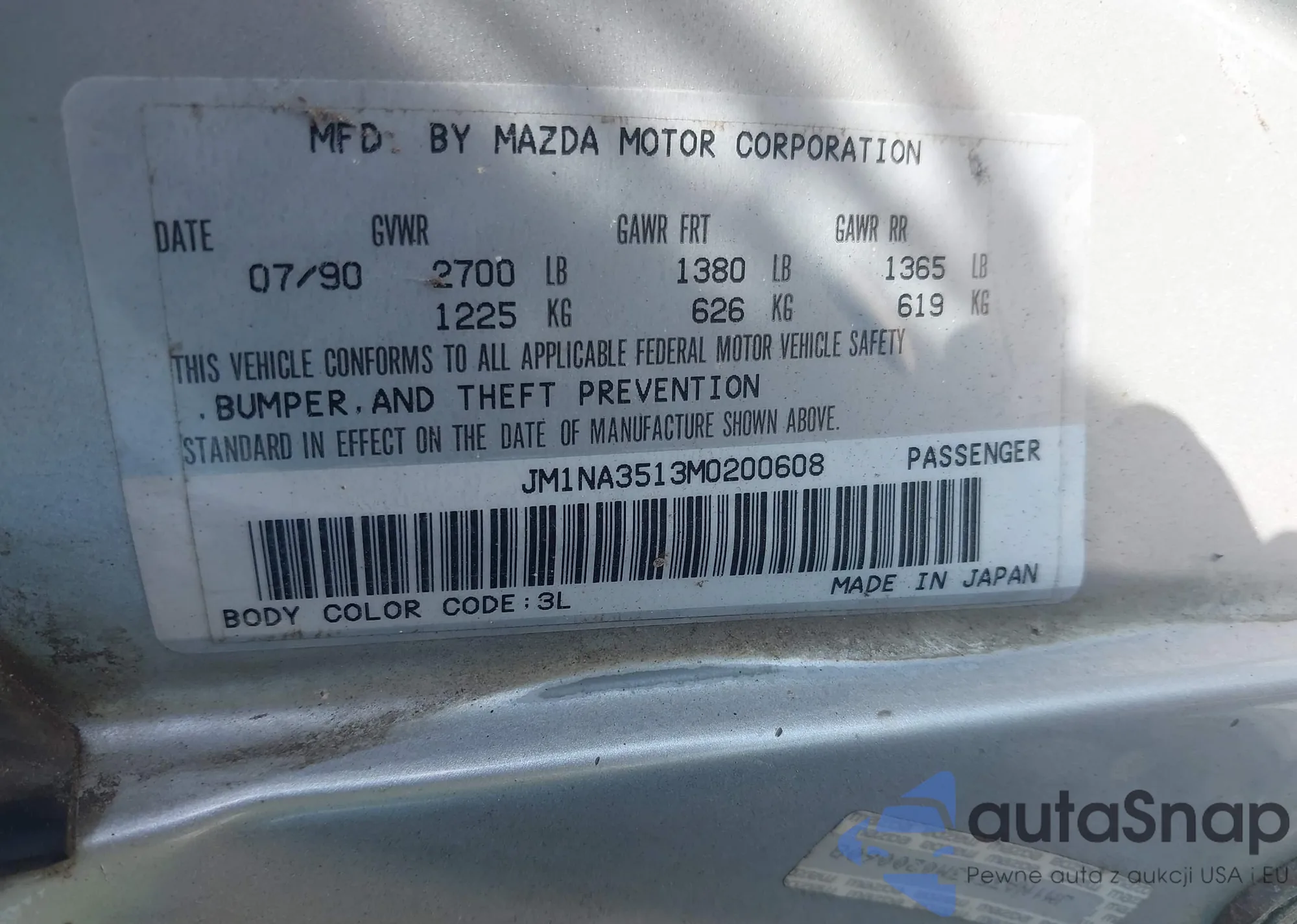 LOT: 42692132 VIN: JM1NA3513M0200608