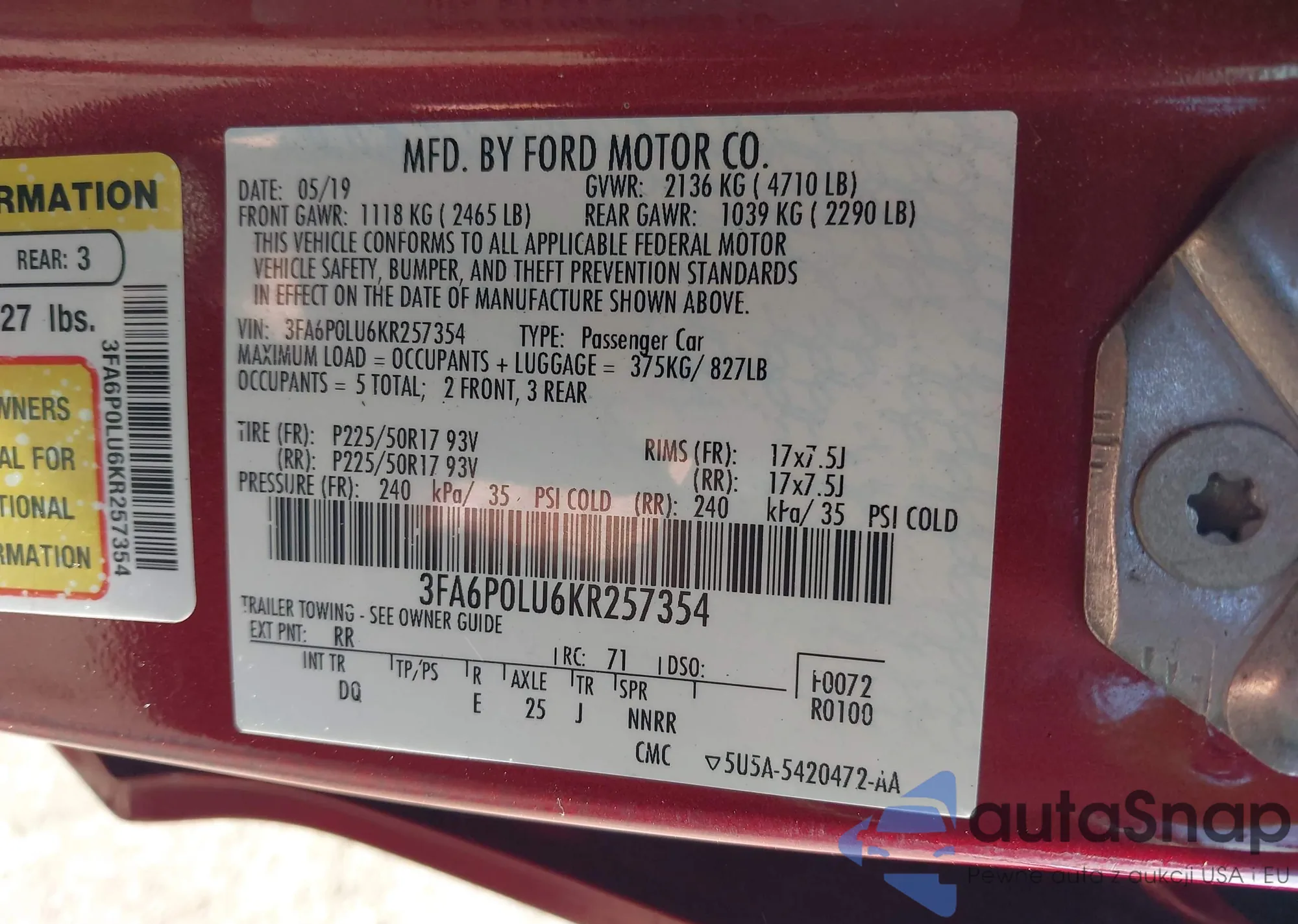 • VIN 1ZVBP8CF4C5265401
