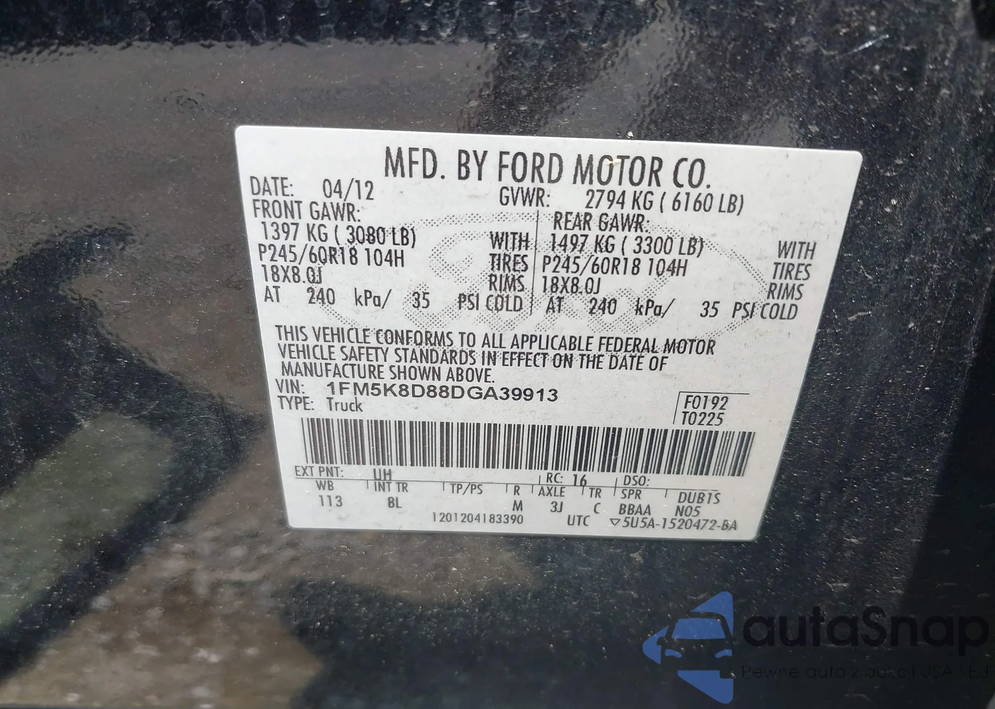 • VIN 1FMCU0F78GUB88268
