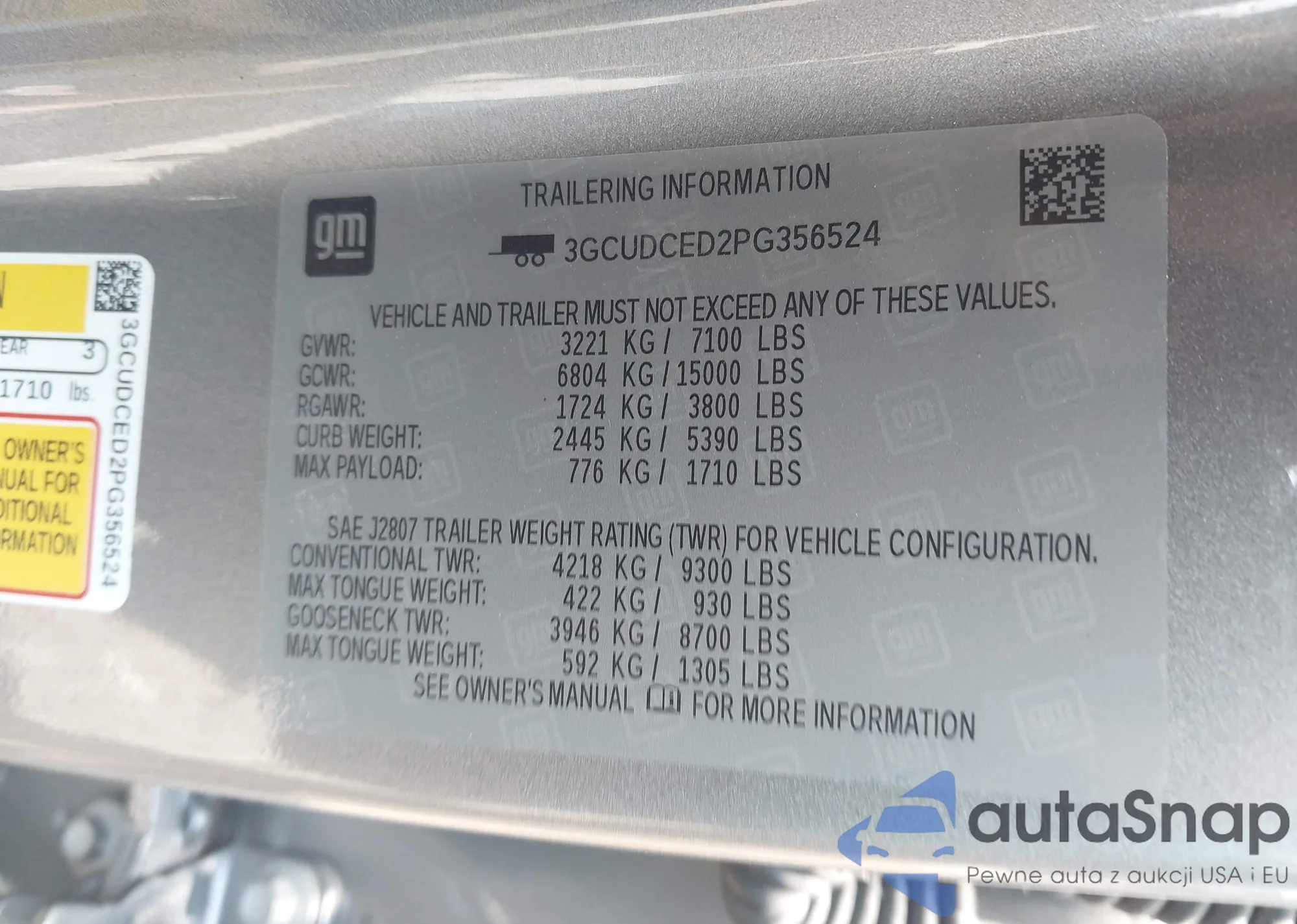 LOT: 42816956 VIN: 3GCUDCED2PG356524