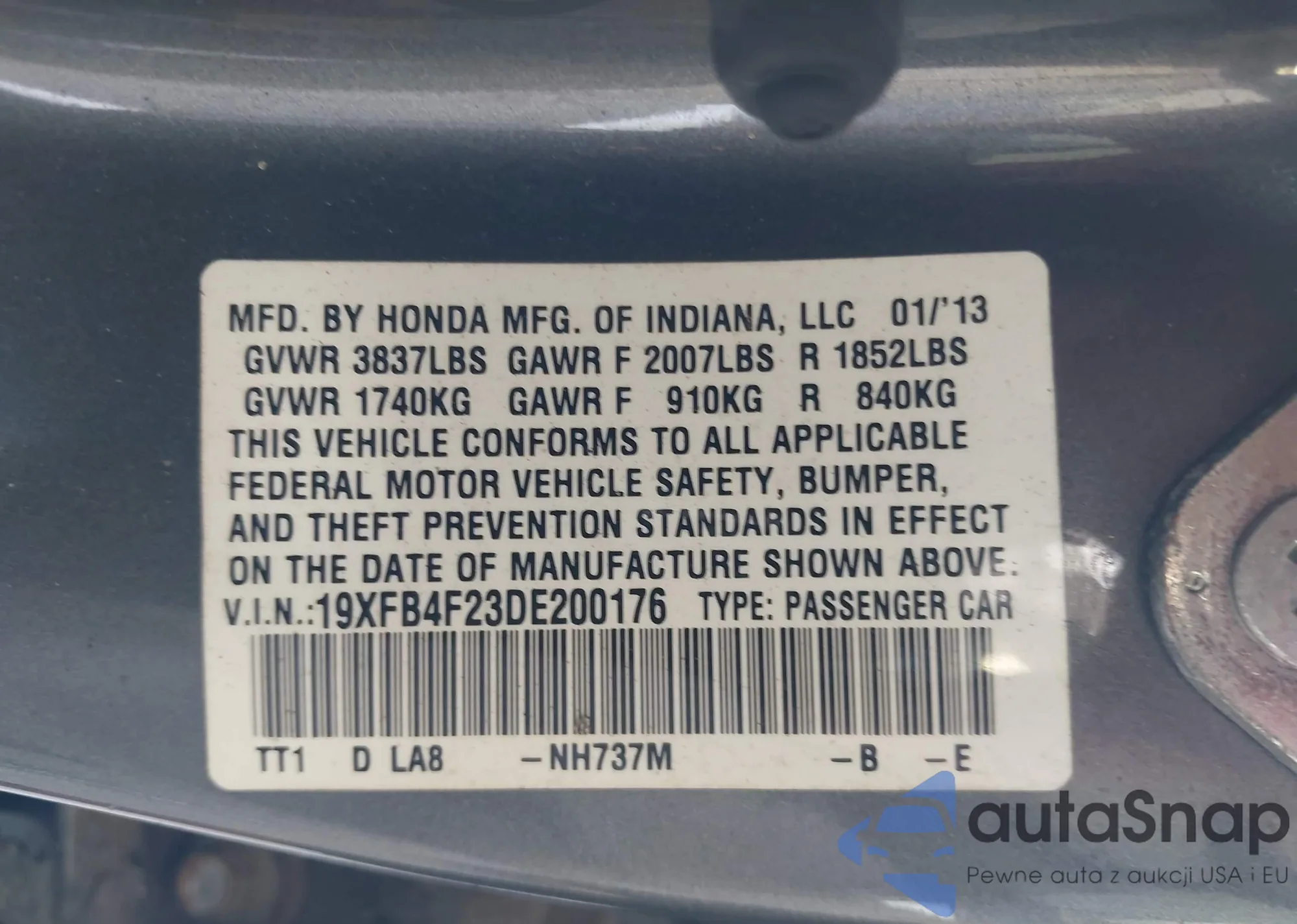 • VIN 5FNYF4H53DB045773