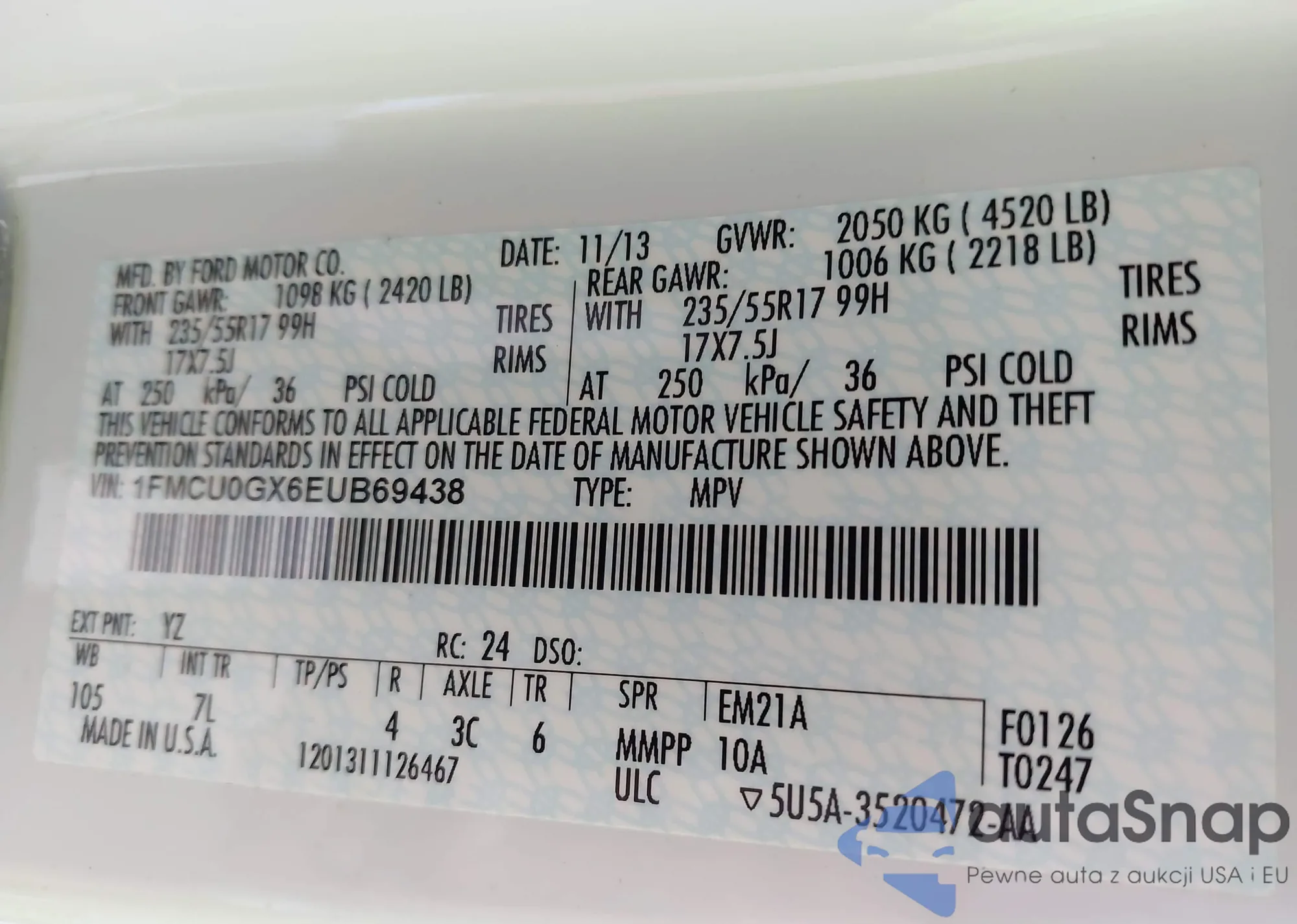 • VIN 1FMCU0GX6EUB69438