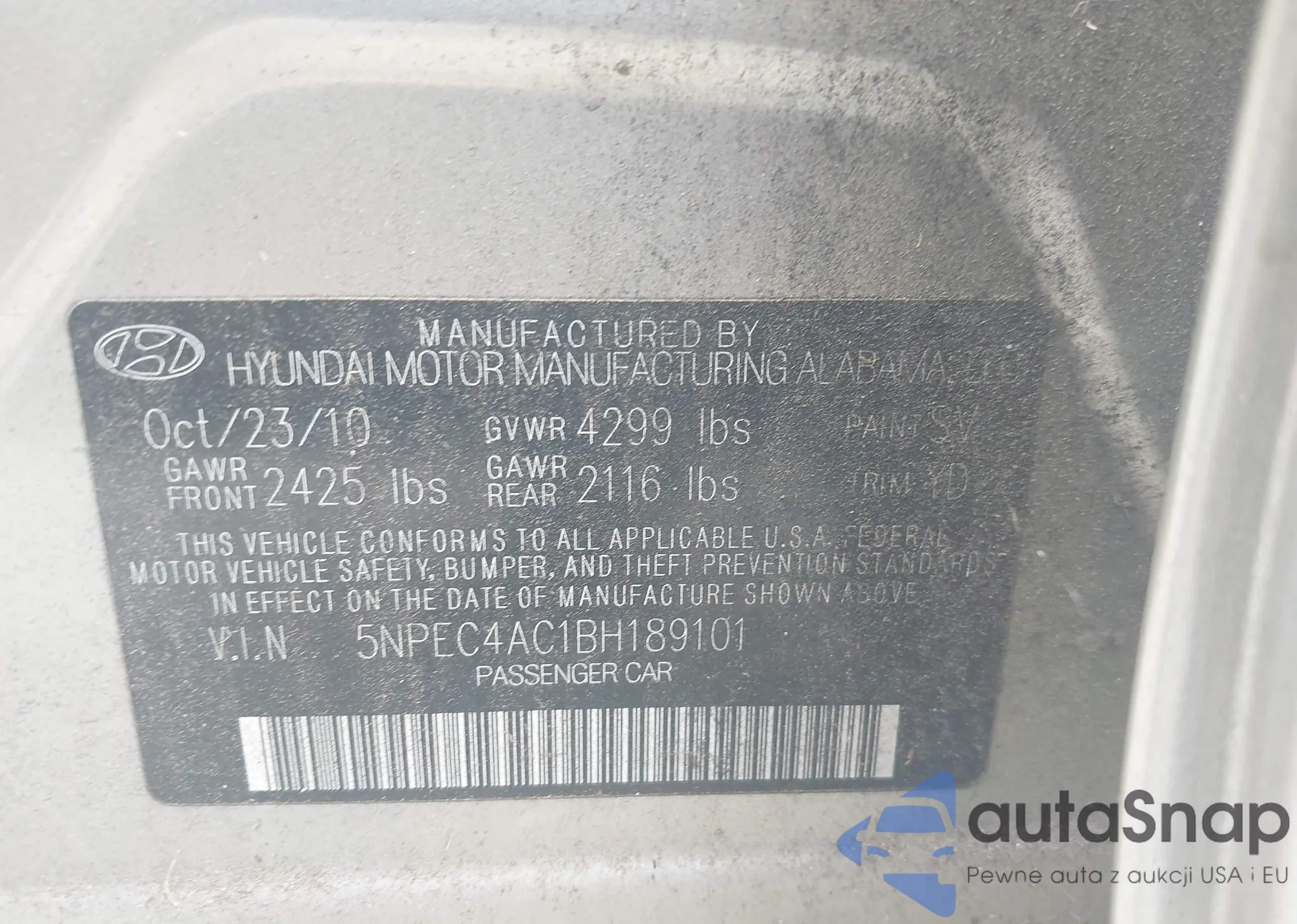 • VIN 5NPEC4AC1BH189101