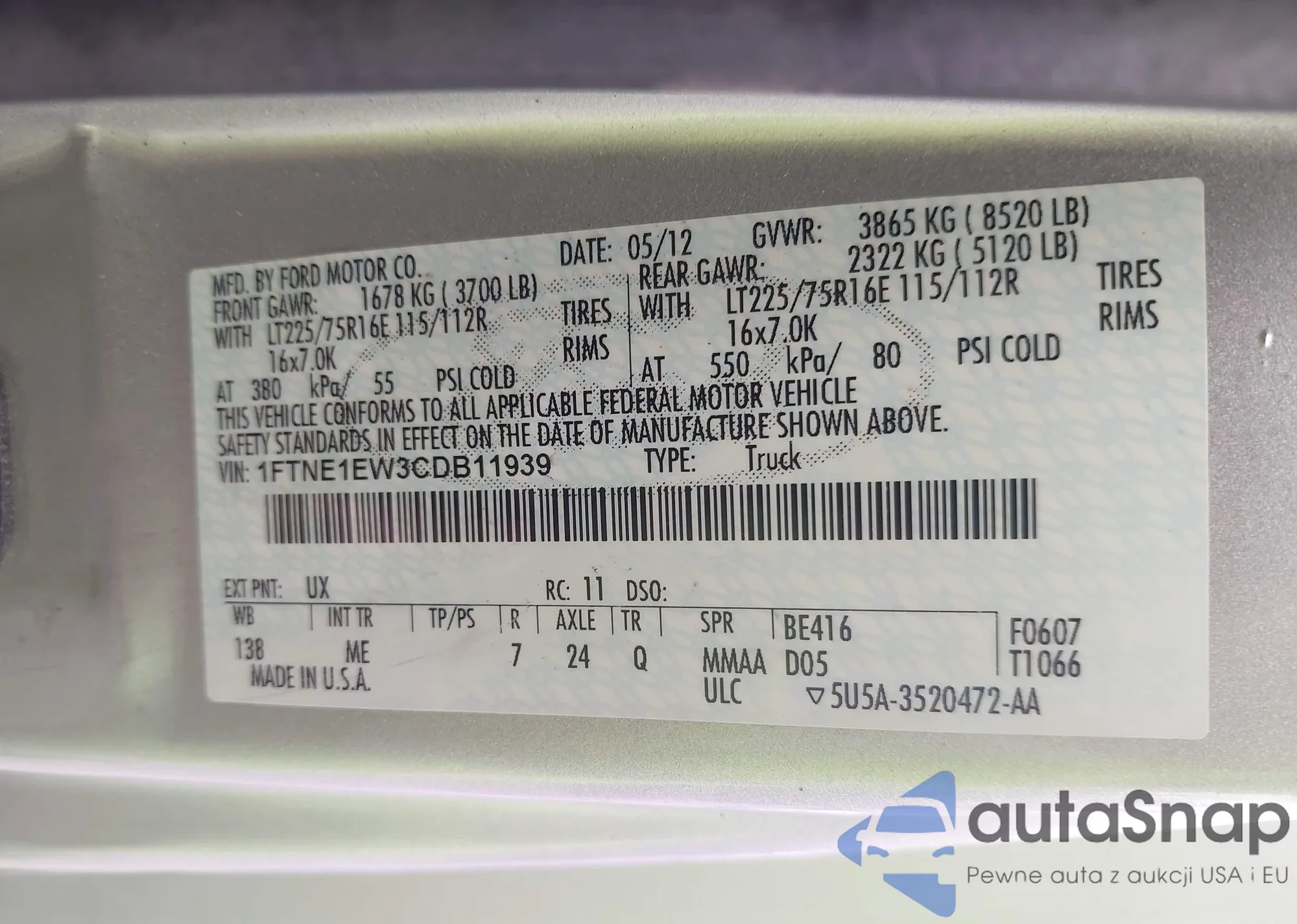 LOT: 42210201 VIN: 1FMCU0F77FUA59467