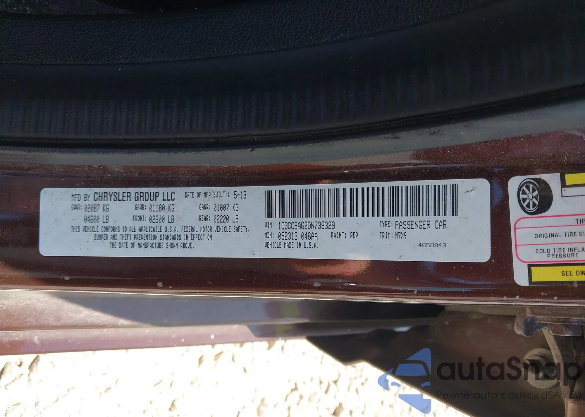• VIN 1C3CCBAG2DN739329