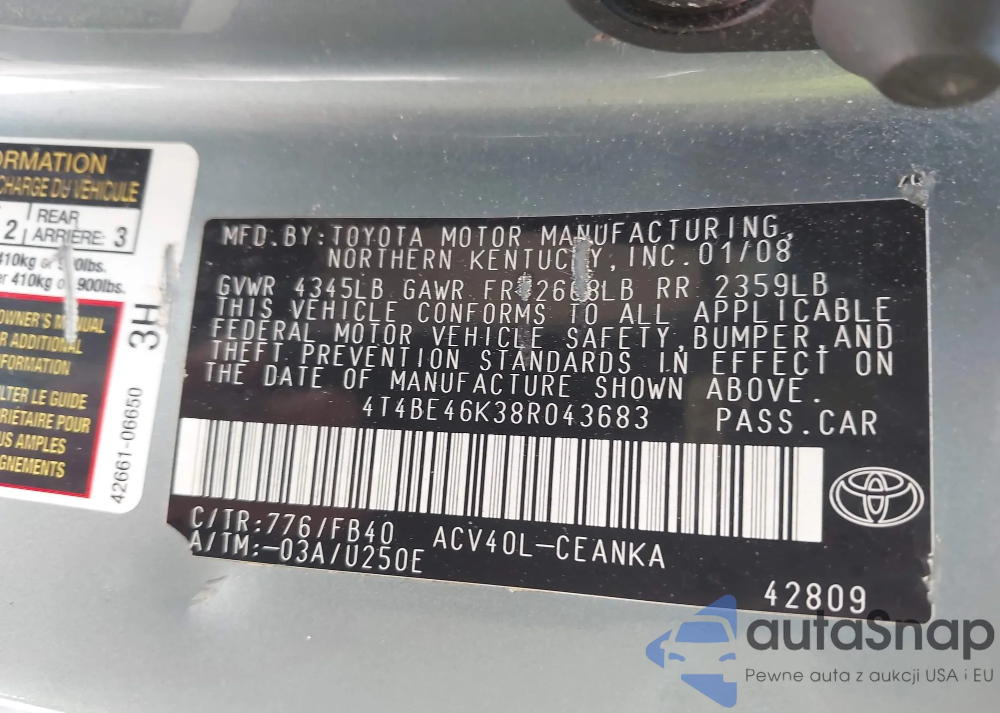 • VIN 4T4BE46K38R043683