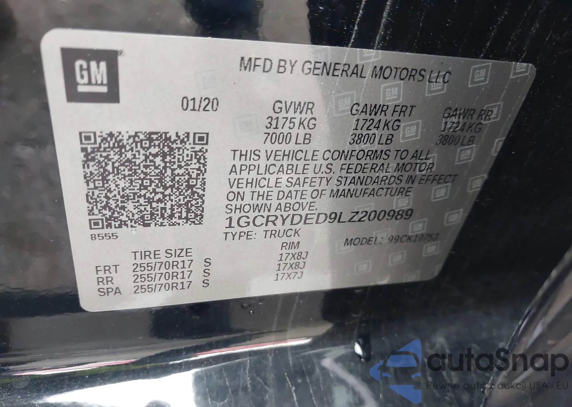 • VIN 1GCRYDED9LZ200989