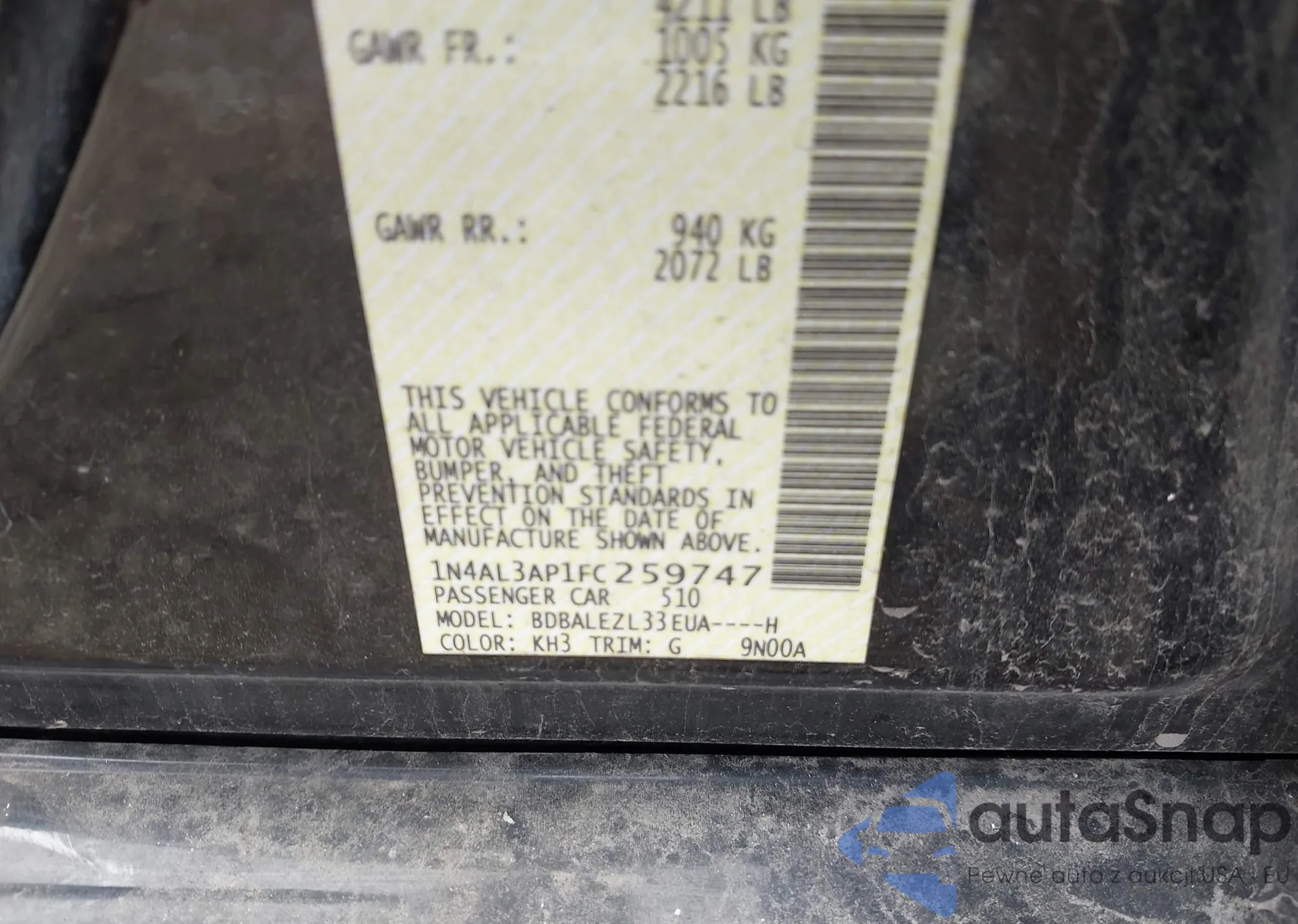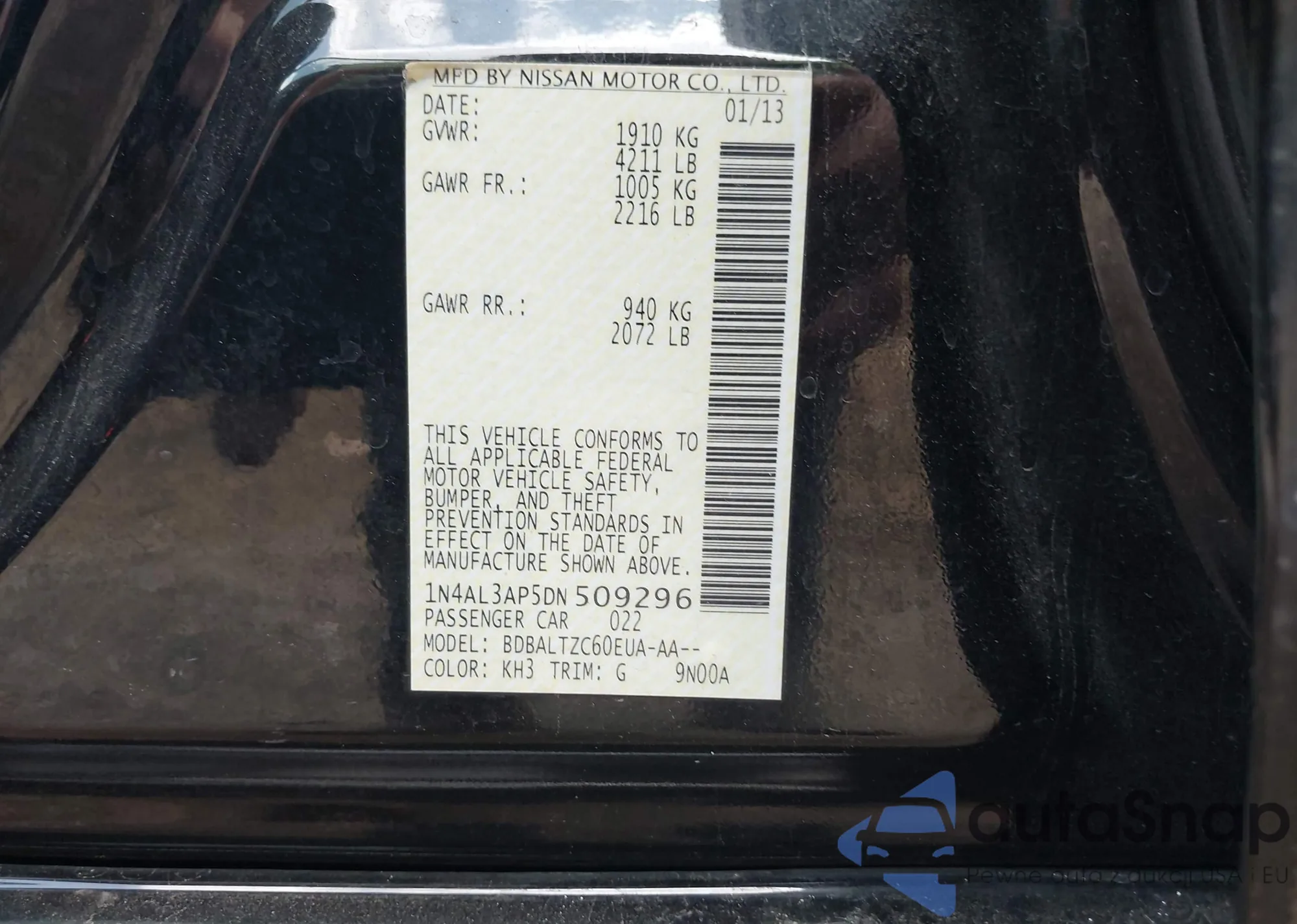 • VIN 1N4AL3AP5DN509296
