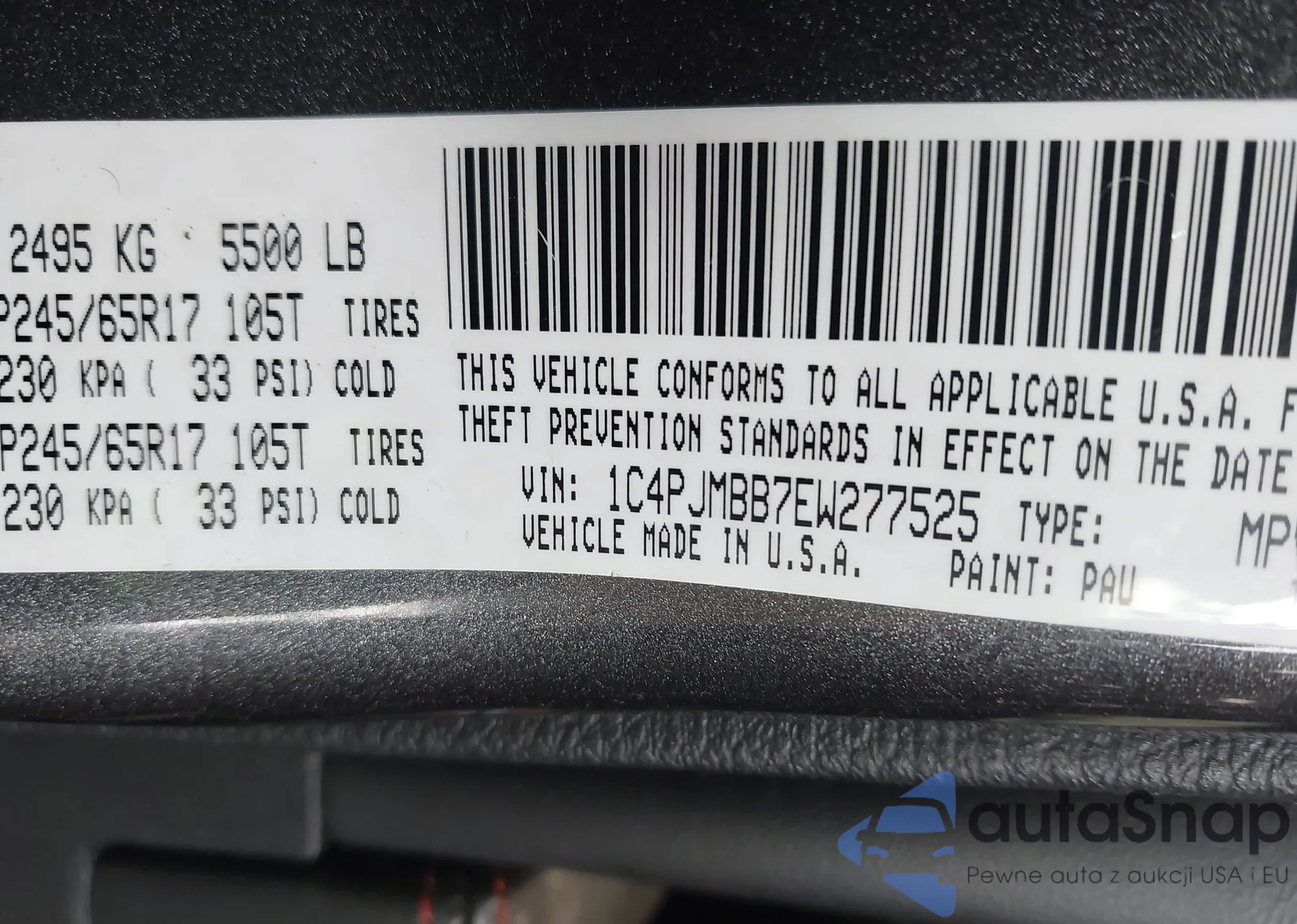 • VIN 2C3CDZFJ5KH529257