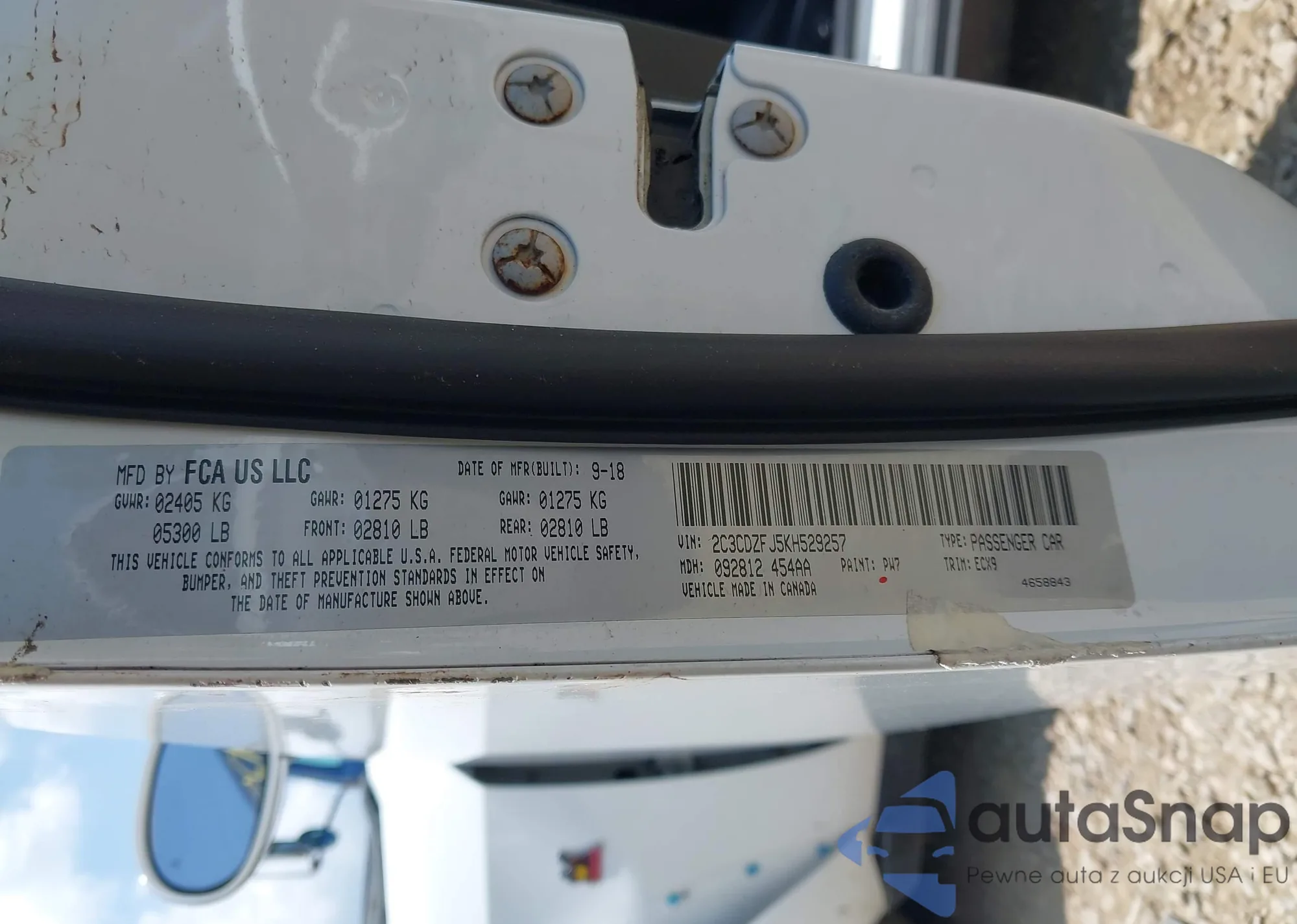 LOT: 42537805 VIN: 2C3CDZFJ5KH529257