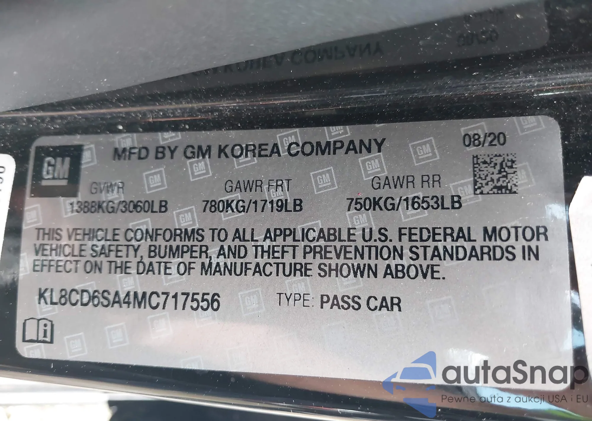 • VIN KL8CD6SA4MC717556