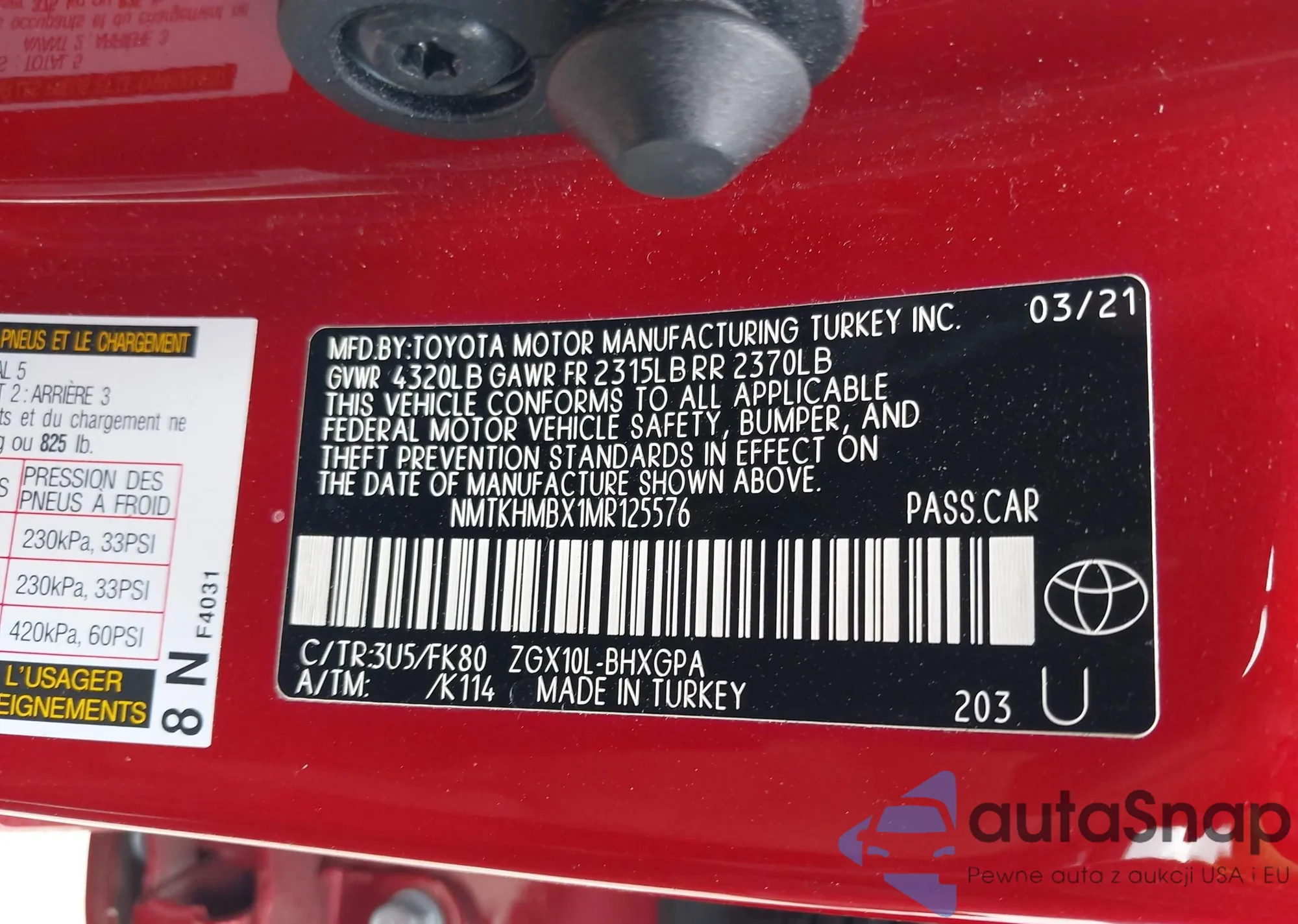 LOT: 42881313 VIN: JTMBK32V085051218