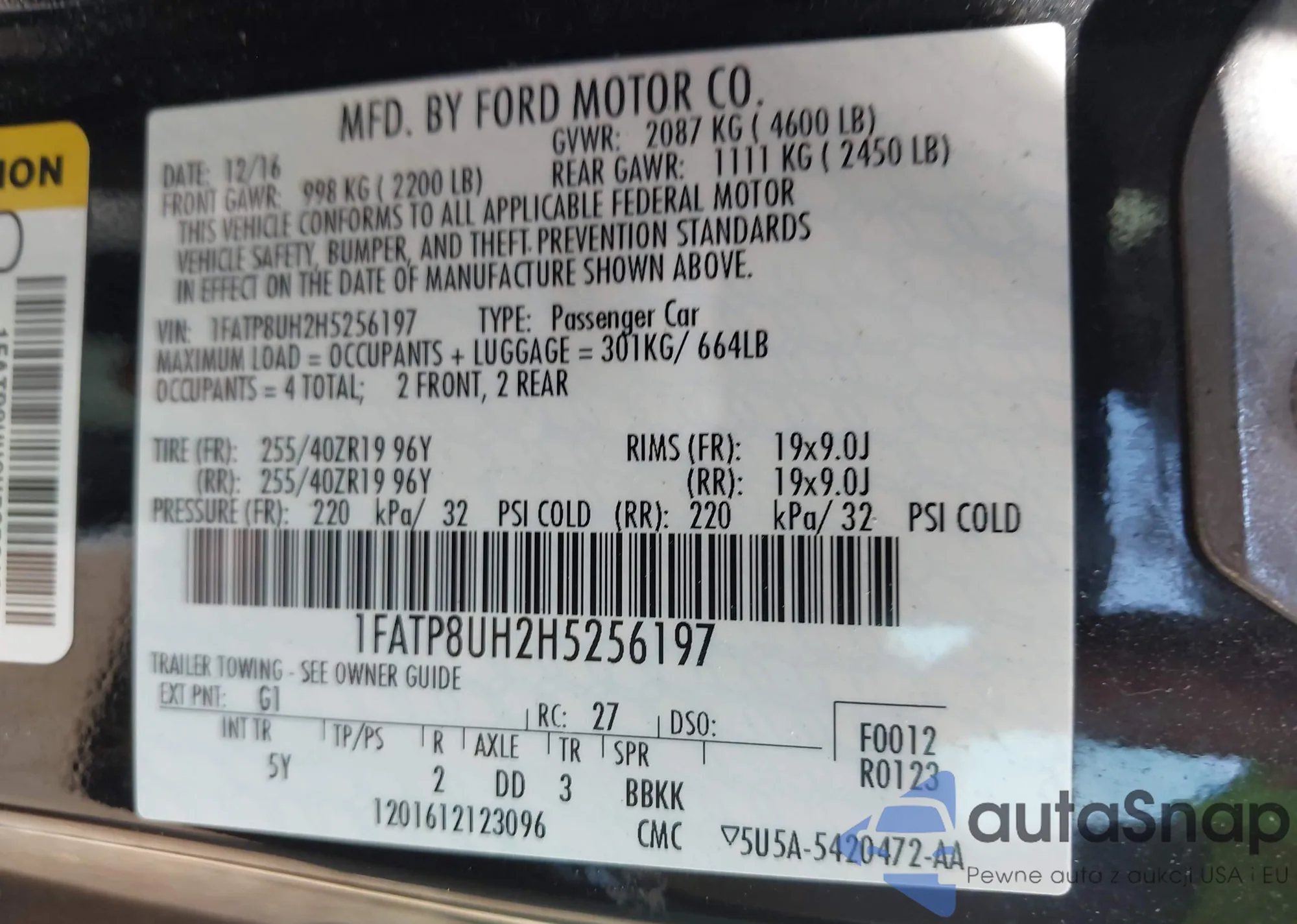 LOT: 42744337 VIN: 2FMPK3G98HBC61509